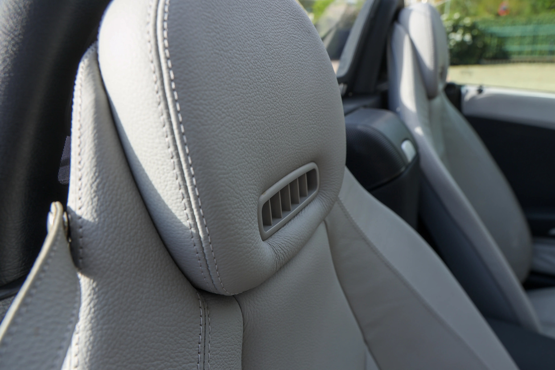 Saviez-vous que les designers de la deuxième génération de SLK (R171) se sont inspirés de la Formule 1 du début des années 2000 ? Cela peut sembler surprenant, mais la face avant avec son nez central proéminent est un clin d’œil évident aux monoplaces de Mercedes-Benz et McLaren de cette époque. Un détail remarquable. L’équipe de design de Mercedes-Benz a réussi à donner à ce roadster compact une allure dynamique et acérée, tout en conservant le charme élégant propre à la marque.