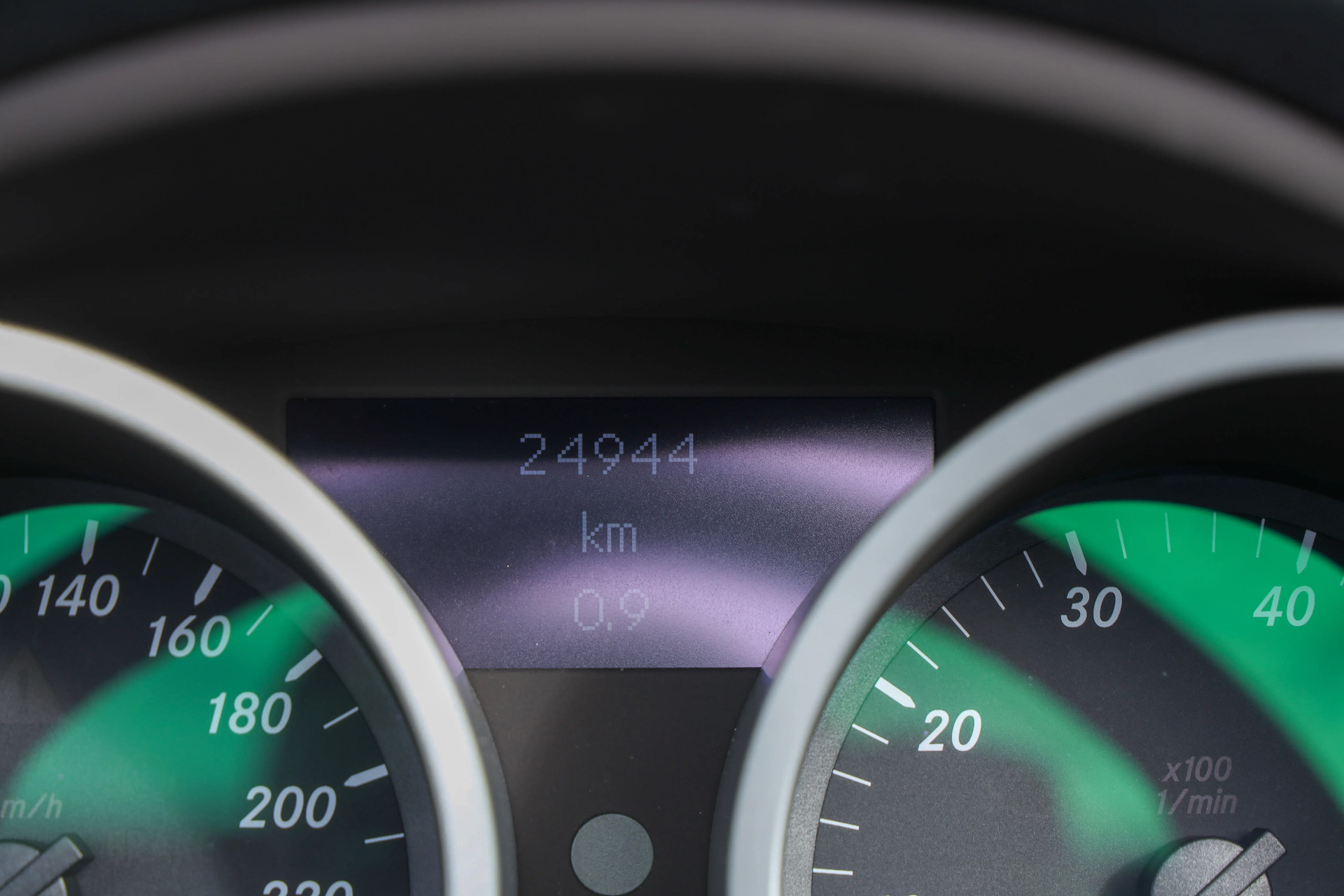 Was macht dieses Exemplar aus dem Jahr 2005 so besonders? Beginnen wir mit der Farbe: Benitoite Blue. Diese Farbe ist nach dem äußerst seltenen Edelstein aus Kalifornien benannt und ebenso exklusiv wie dieser selbst. Sie verleiht dem Fahrzeug Tiefe und betont die fließenden Linien der Karosserie auf elegante Weise. Dieser Mercedes-Benz befindet sich noch vollständig im originalen Erstlack und der Zustand ist schlicht herausragend. Es handelt sich inzwischen um ein echtes Liebhaberstück, das stets bei einem offiziellen Mercedes-Benz Händler gewartet wurde.