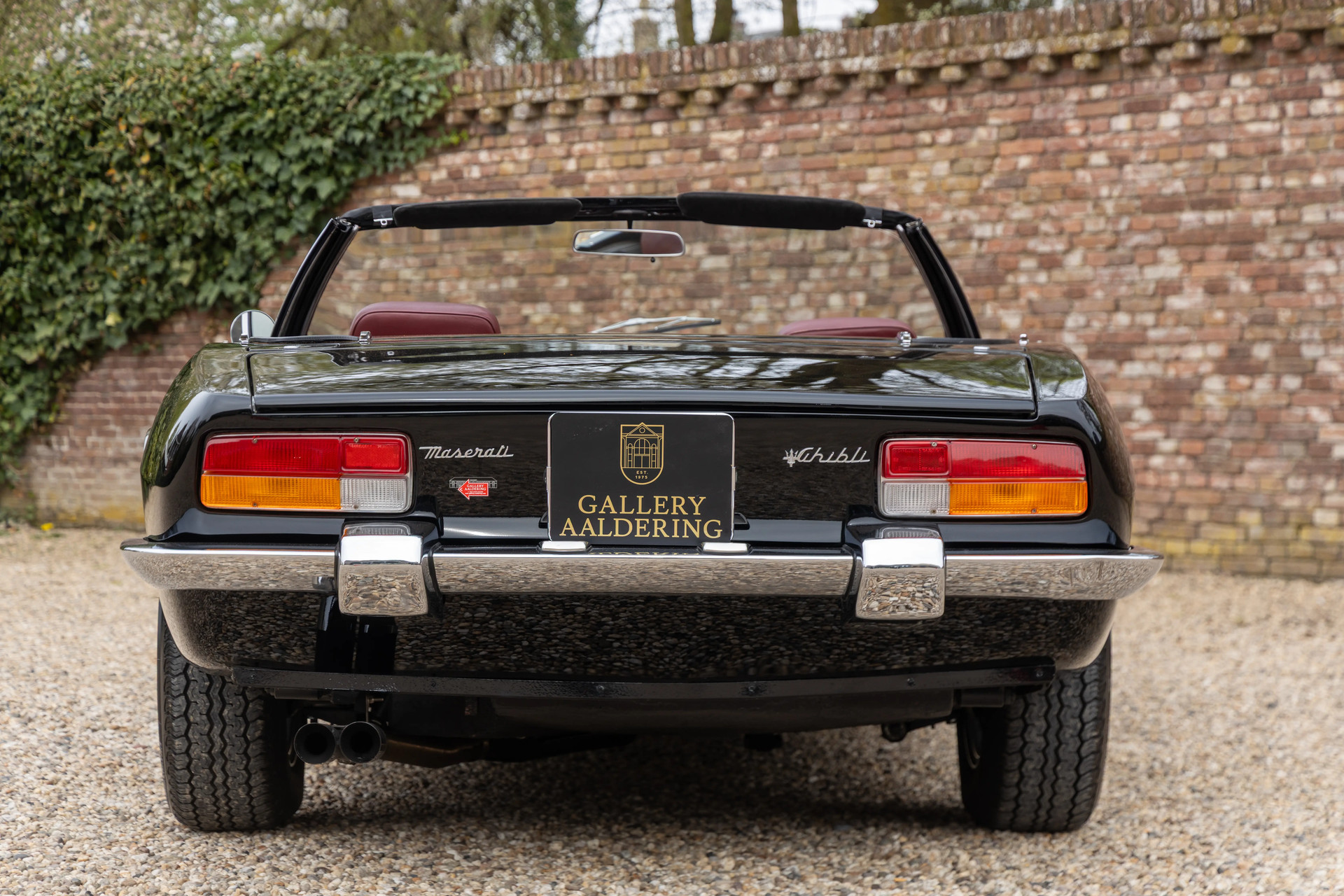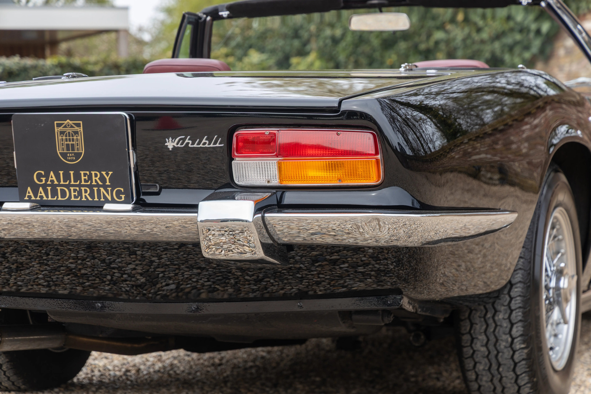 Inoltre, questa Ghibli conserva il suo motore originale con numeri di serie corrispondenti. Le condizioni? Ottimamente tenuta e accuratamente preservata. Gli esterni presentano un eccellente accoppiamento dei pannelli, in parte grazie alla maestria della Carrozzeria Campana, e la vernice ha una lucentezza profonda e intensa. Gli interni rappresentano la vera essenza del design e dell'atmosfera italiana. I rivestimenti rossi contrastano splendidamente con gli esterni. L'elegante volante completa il quadro. E le condizioni degli interni sono altrettanto impressionanti. Vi invitiamo a visionare le foto sul nostro sito web per un'impressione più dettagliata.