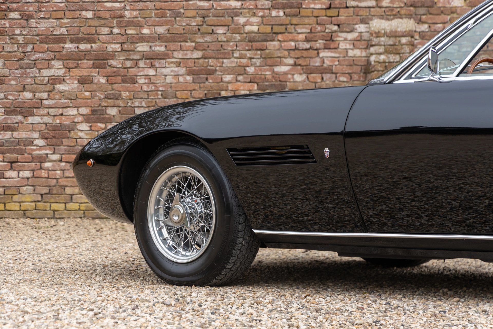 1968 brachte Maserati die offene Version auf den Markt: den Spyder. Und das veränderte den Charakter des Fahrzeugs vollständig. Ohne Dach kommen die Linien noch besser zur Geltung, und der Maserati Ghibli erhält ein zusätzliches Gefühl von Freiheit und Eleganz. Vom Maserati Ghibli Spyder wurden lediglich 125 Exemplare gebaut, was ihn heute bei Sammlern besonders begehrt macht. Dieses spezifische Exemplar wurde von Campana Carrozzeria Modena gefertigt. Das bedeutet, dass Sie hier ein Fahrzeug mit besonderer Liebe zum Detail und hoher Verarbeitungsqualität vor sich haben.