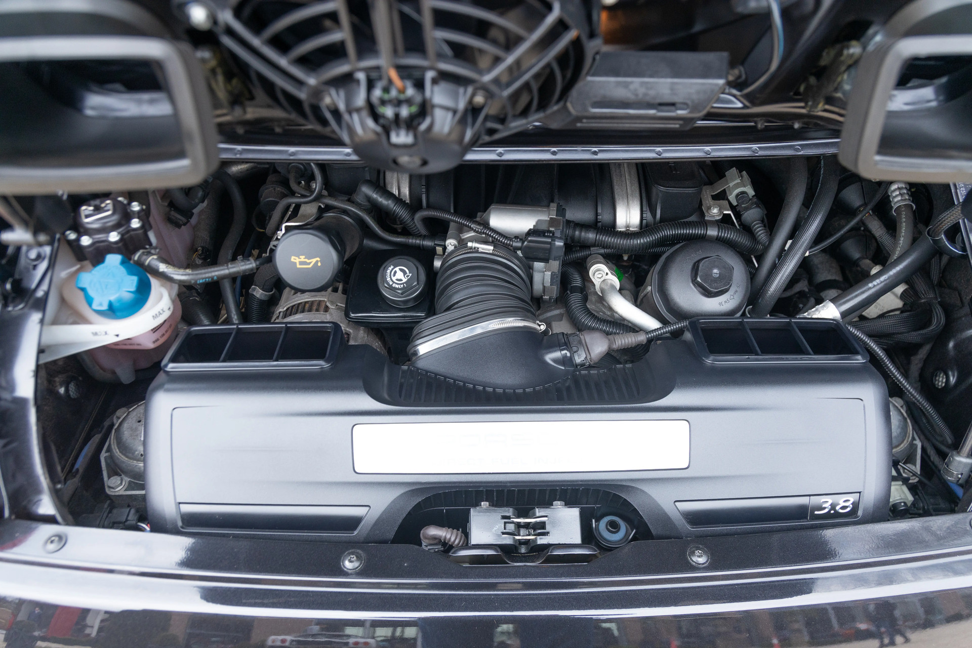 Nella parte posteriore si trova il noto motore boxer a sei cilindri da 3.8 litri. Abbinato allo scarico sportivo opzionale, azionabile con la semplice pressione di un pulsante, permette di modulare l'intensità del suono. Discreto quando lo si desidera, più pronunciato quando l'umore lo richiede.