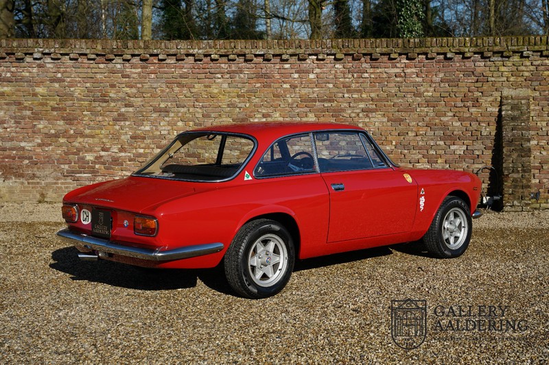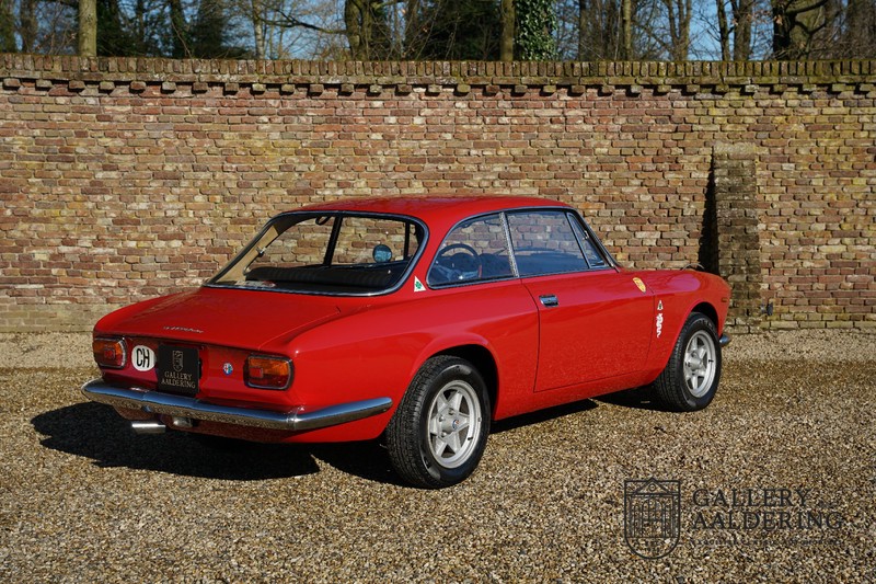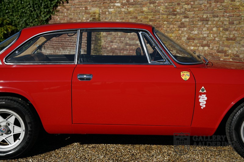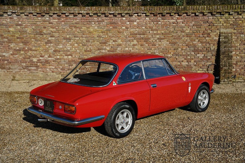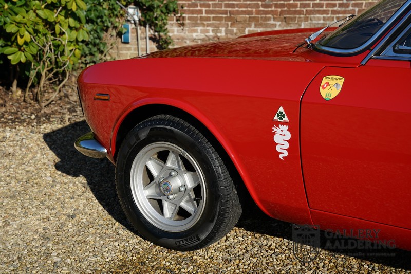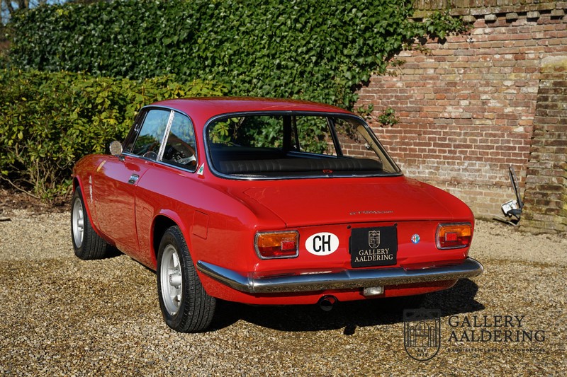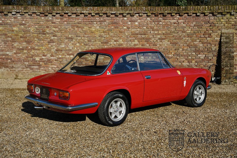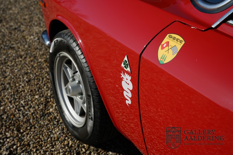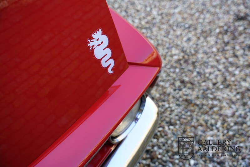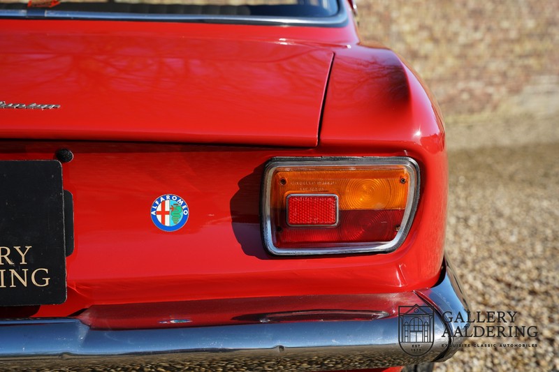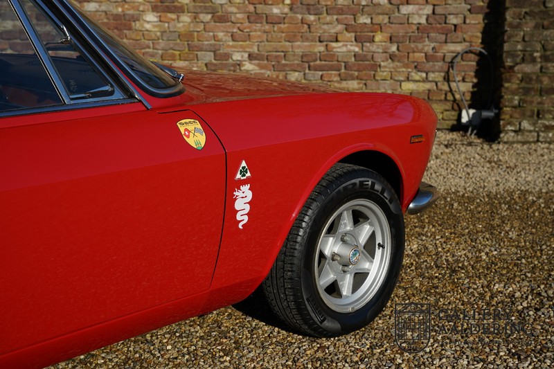 This Alfa Romeo 1300 GT Junior was supplied to its first owner in 1970. The guy, born in 1933, knew how to select a fine Alfa Romeo 1300 GT Junior. Until recently this fully restored and mechanically overhauled car resided in Switzerland. The Alfa Romeo 1300 GT Junior is the 105 series entry model. That makes this little Alfa one of the finest entry models in automotive history. Whilst the 1300 GT only had a modest 90 Ps in house, this is amply compensated by its shorter final gear reduction. The top speed of 160 km/hr is still very respectable. Naturally, it is rear-wheel drive and powered by the delectable Alfa Romeo Twin Cam engine.