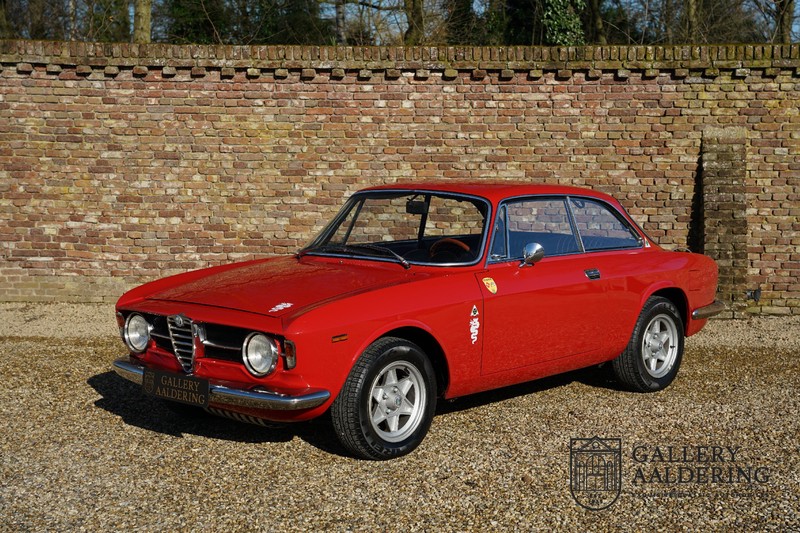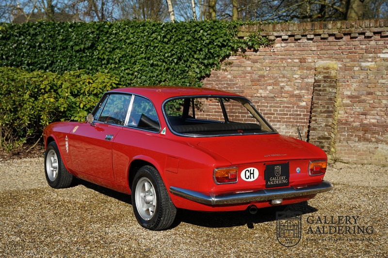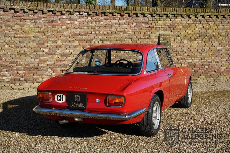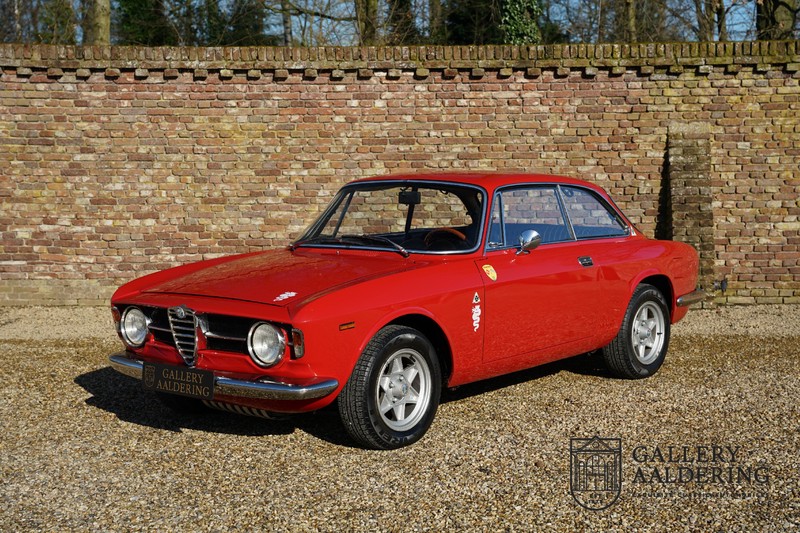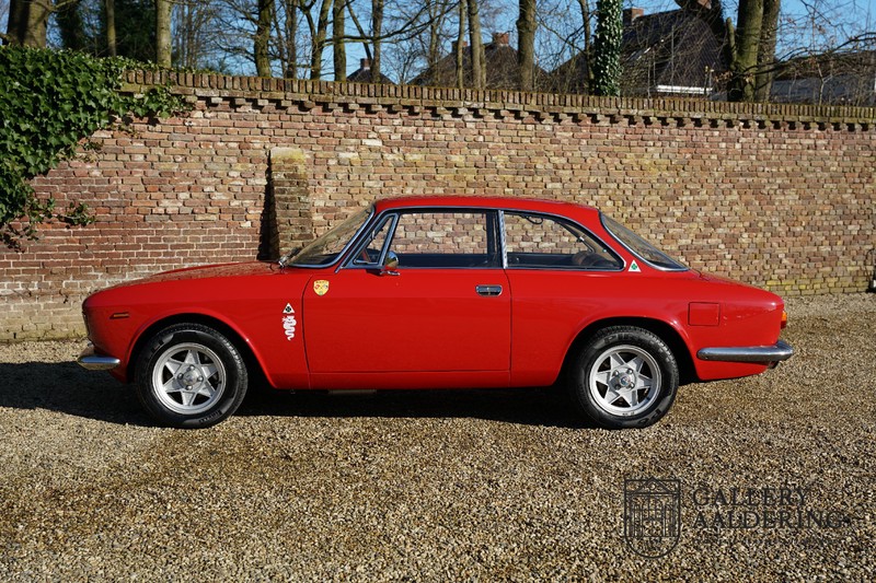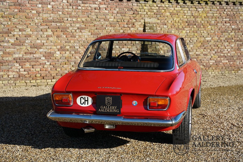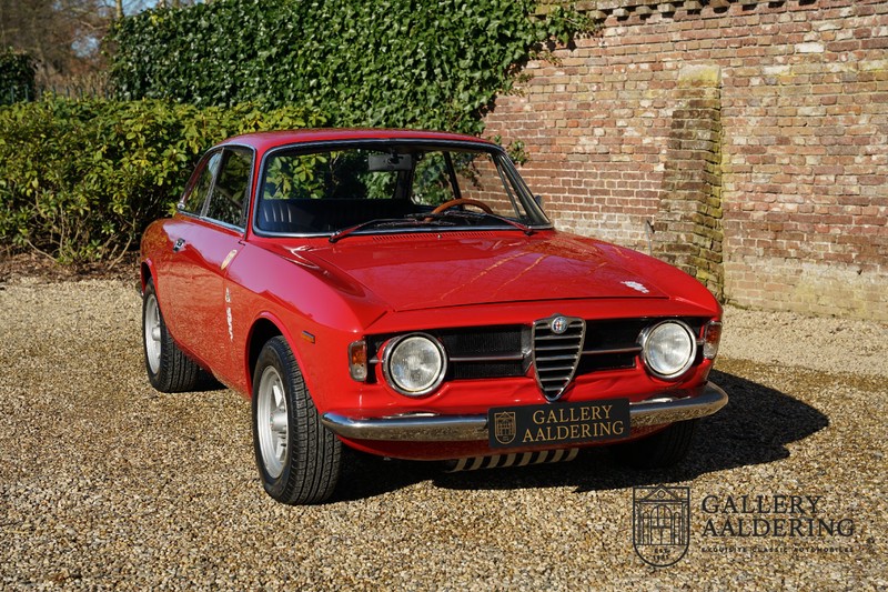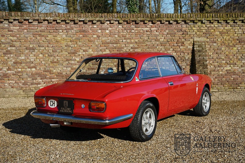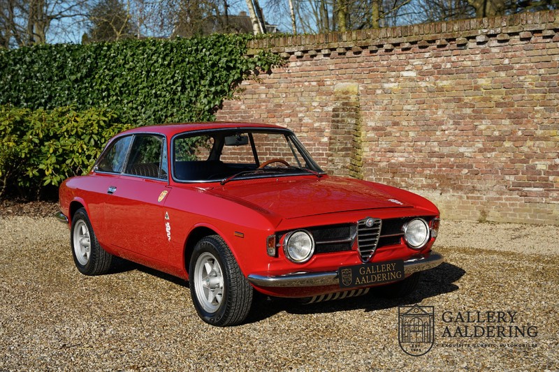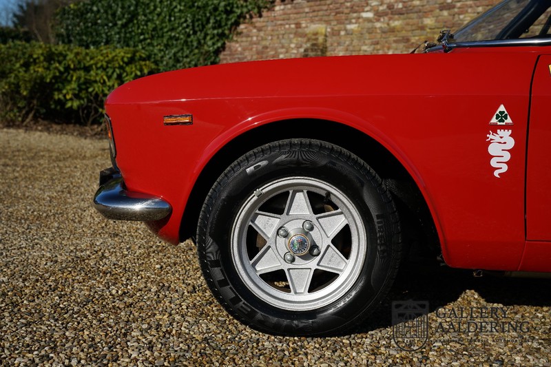 This Alfa Romeo 1300 GT Junior was supplied to its first owner in 1970. The guy, born in 1933, knew how to select a fine Alfa Romeo 1300 GT Junior. Until recently this fully restored and mechanically overhauled car resided in Switzerland. The Alfa Romeo 1300 GT Junior is the 105 series entry model. That makes this little Alfa one of the finest entry models in automotive history. Whilst the 1300 GT only had a modest 90 Ps in house, this is amply compensated by its shorter final gear reduction. The top speed of 160 km/hr is still very respectable. Naturally, it is rear-wheel drive and powered by the delectable Alfa Romeo Twin Cam engine.