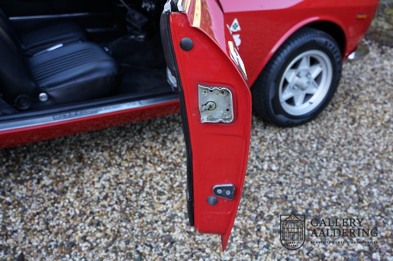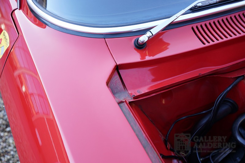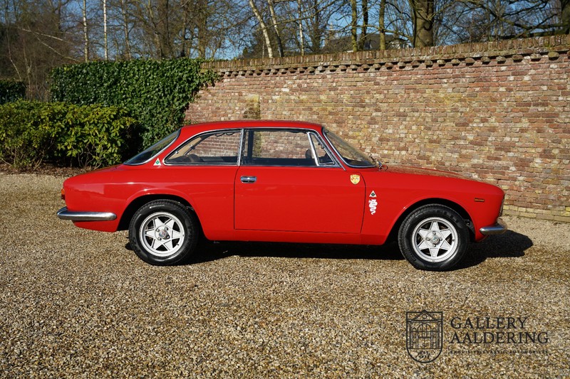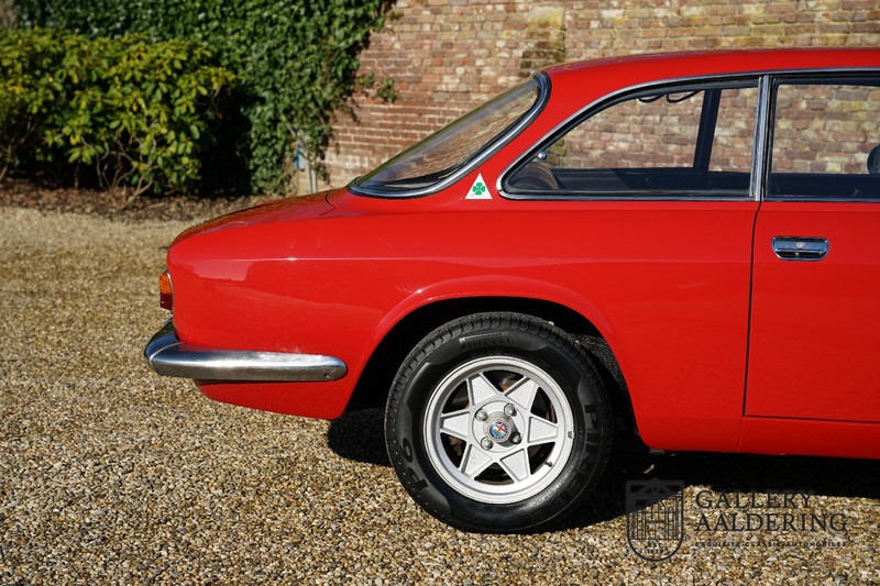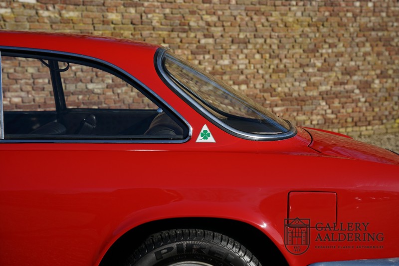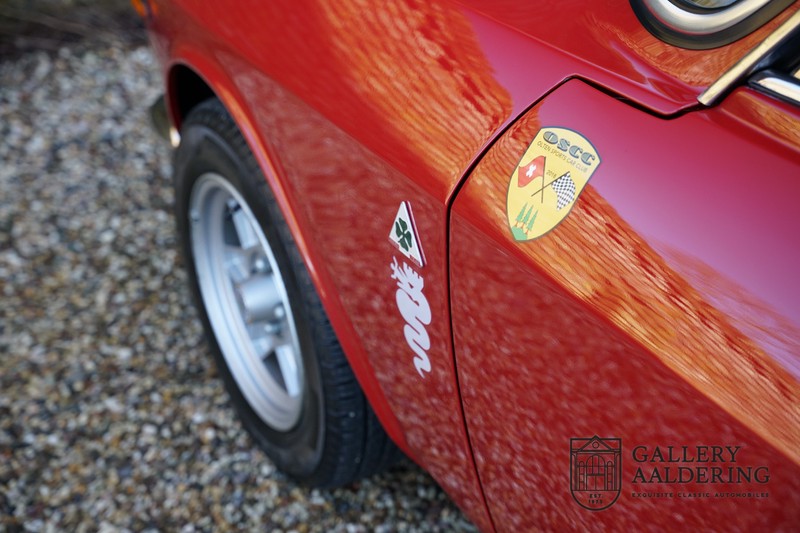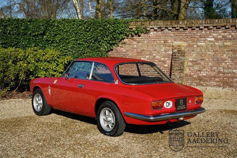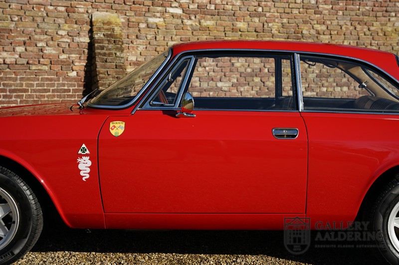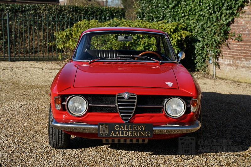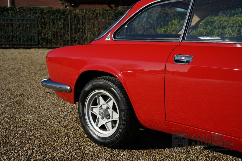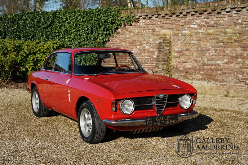 This Alfa Romeo 1300 GT Junior was supplied to its first owner in 1970. The guy, born in 1933, knew how to select a fine Alfa Romeo 1300 GT Junior. Until recently this fully restored and mechanically overhauled car resided in Switzerland. The Alfa Romeo 1300 GT Junior is the 105 series entry model. That makes this little Alfa one of the finest entry models in automotive history. Whilst the 1300 GT only had a modest 90 Ps in house, this is amply compensated by its shorter final gear reduction. The top speed of 160 km/hr is still very respectable. Naturally, it is rear-wheel drive and powered by the delectable Alfa Romeo Twin Cam engine.