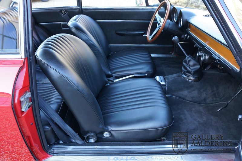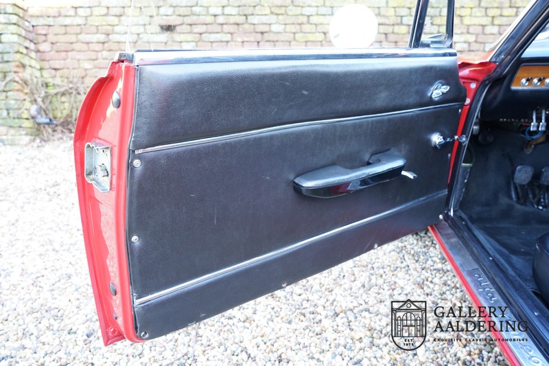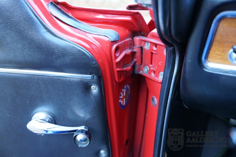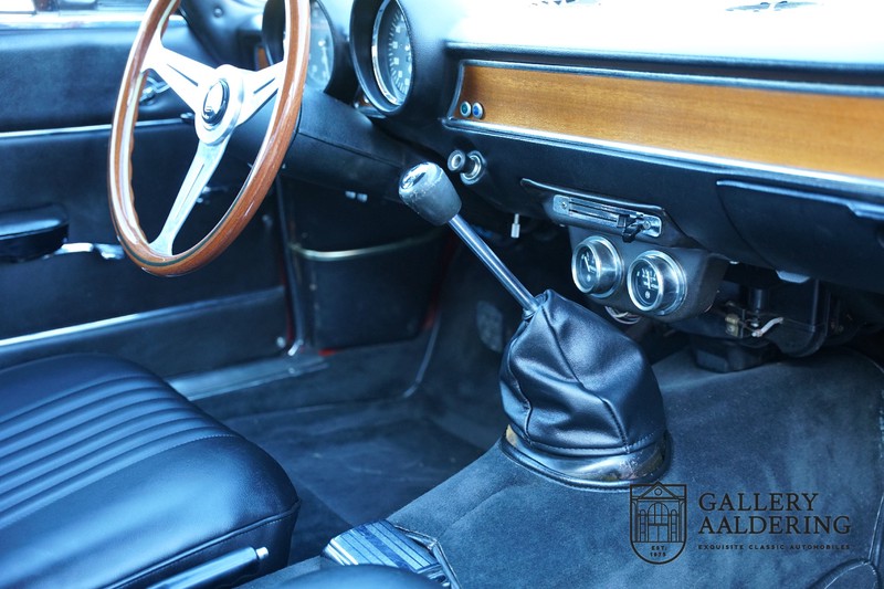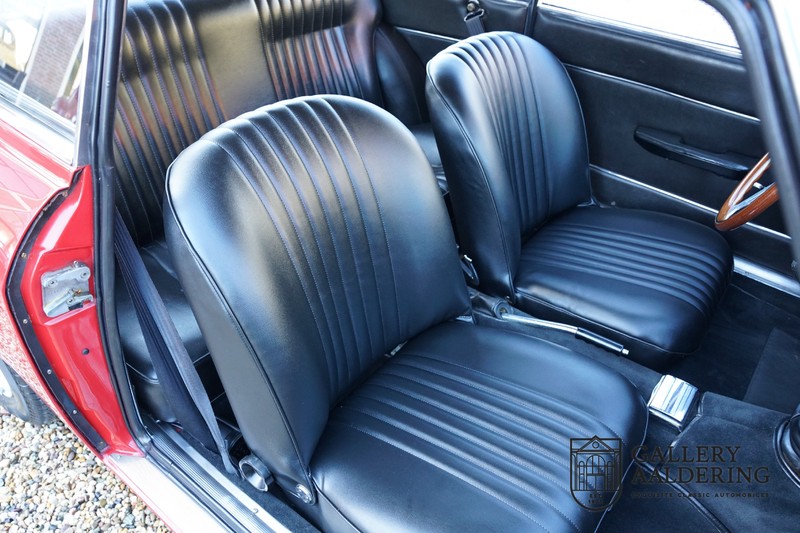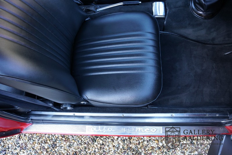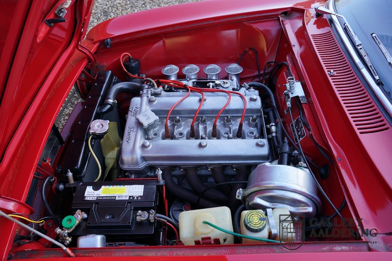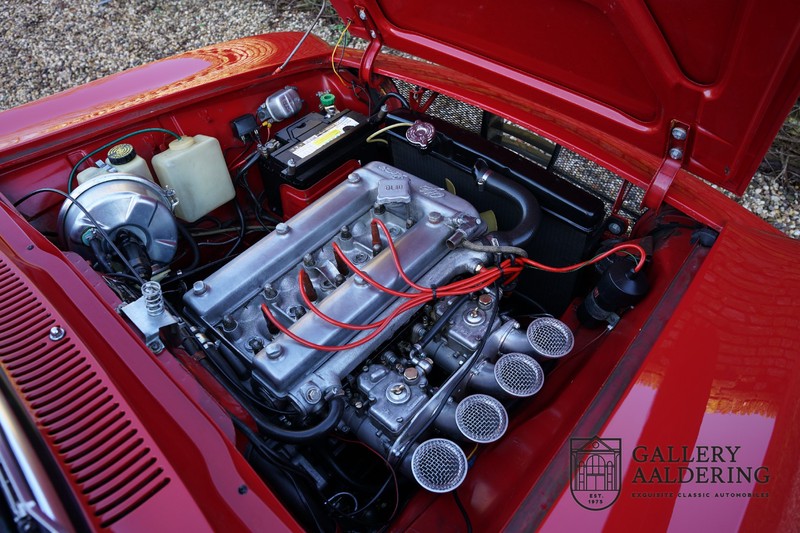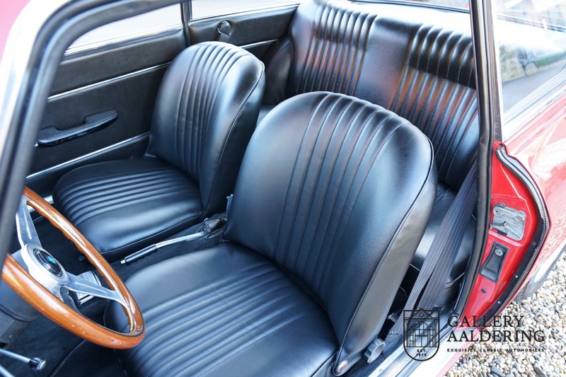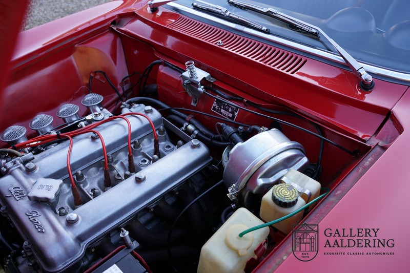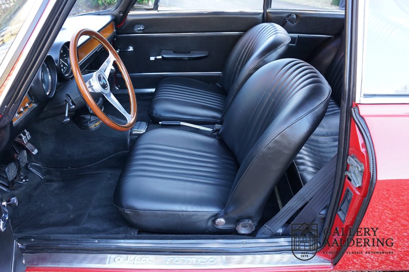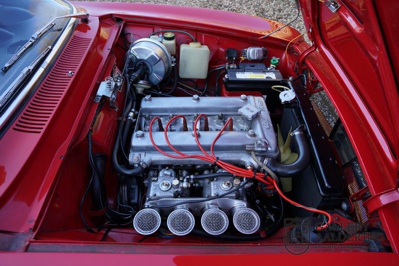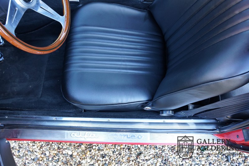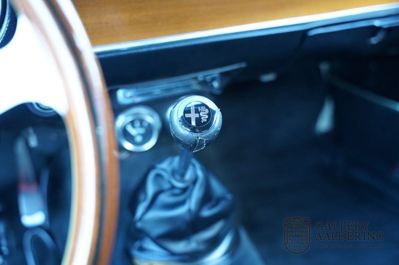 The mechanics have been subjected to a full overhaul. The engine, therefore, runs smoothly and sounds even better as it takes in air through the open-air filters fitted to the twin Webers. It is a great kick to give this Alfa Romeo 1300 Twin Cam some welly and utilise all of its available power. The 5-speed gearbox shifts precisely of course. The suspension and brakes are also in great shape and do their respective jobs as expected.