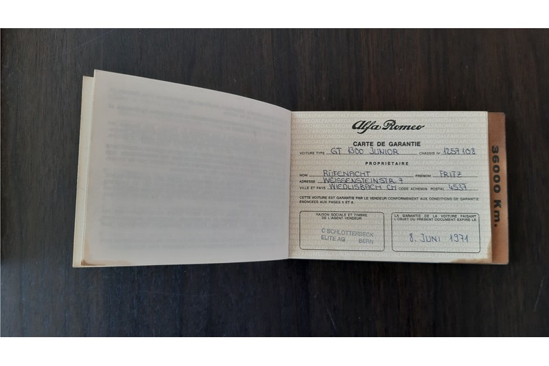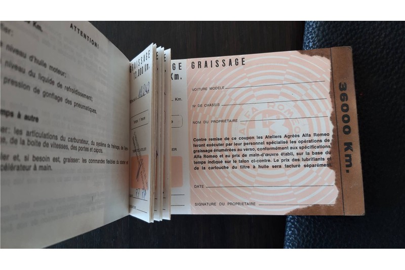 De auto wordt geleverd met de originele boordmap en daarbij alle boekjes die erbij horen. Kortom een ongelooflijk leuke Alfa Romeo 1300 GT Junior met het karakteristieke brievenbusje motorkap.