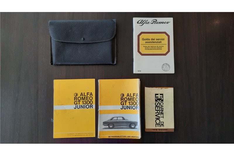 This car comes with its original fully-loaded car wallet. This is an incredibly fun and fine 1970 Alfa Romeo 1300 GT Junior with its characteristic postbox bonnet.