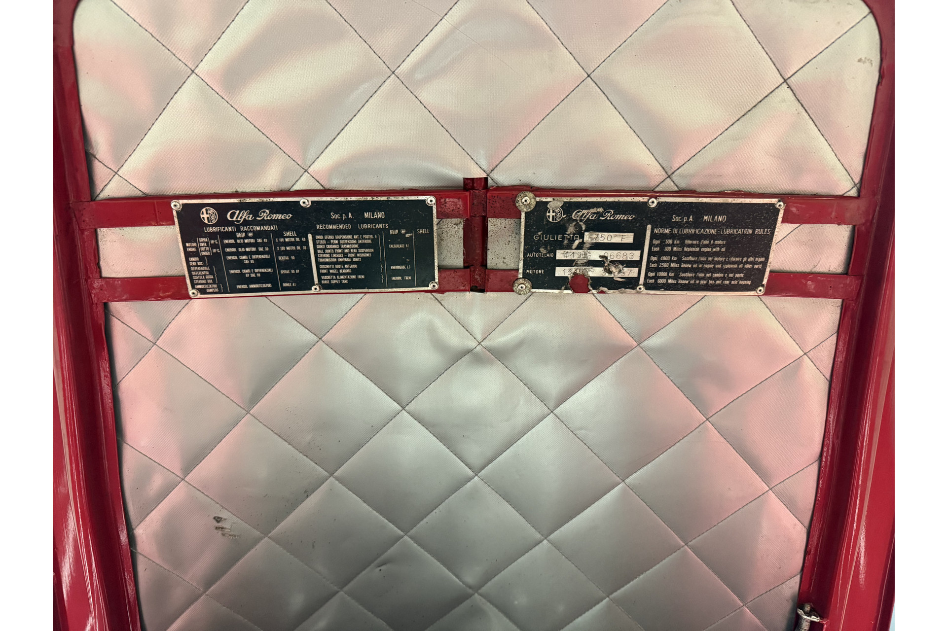 This Giulietta was lovingly restored in the 1990s by a true Alfa Romeo connoisseur. Someone who knew the marque inside and out and valued authenticity above all else. The restoration work was carried out with meticulous attention to originality, using genuine components throughout. The paint shows a light patina in places and may require minor attention for the perfectionist, but overall, the car exudes honesty and charm. Both the engine and chassis are matching numbers, officially verified by marque experts.