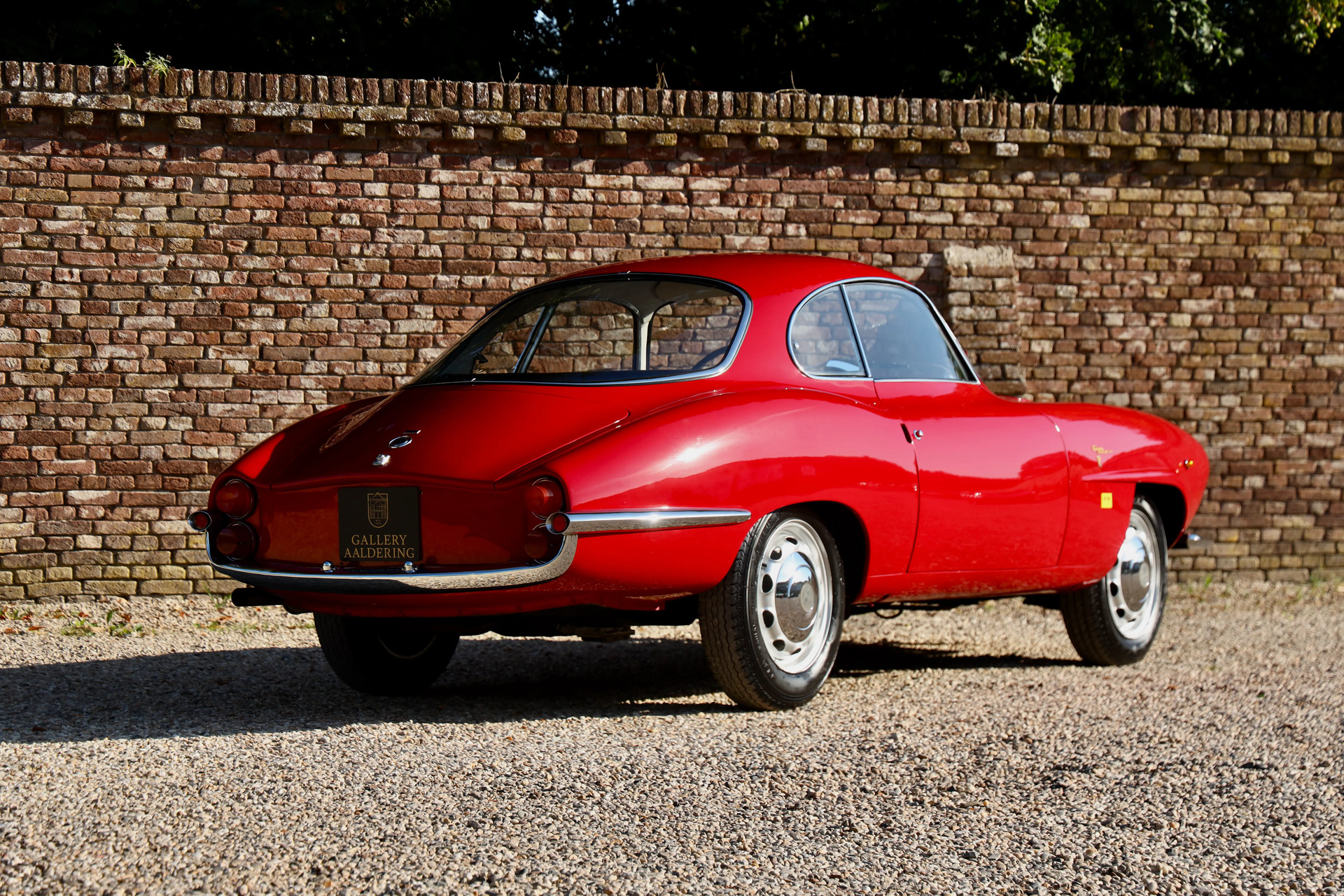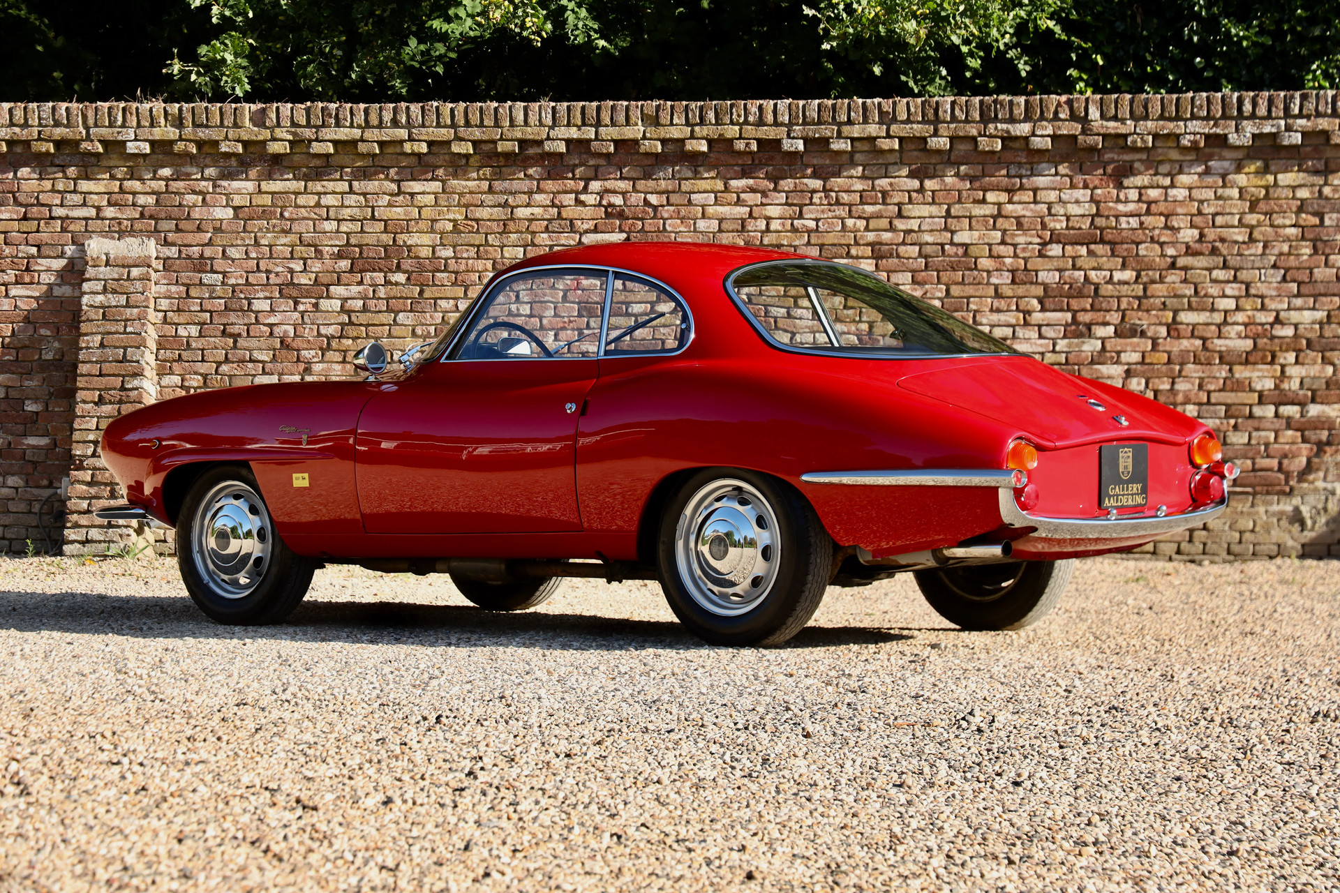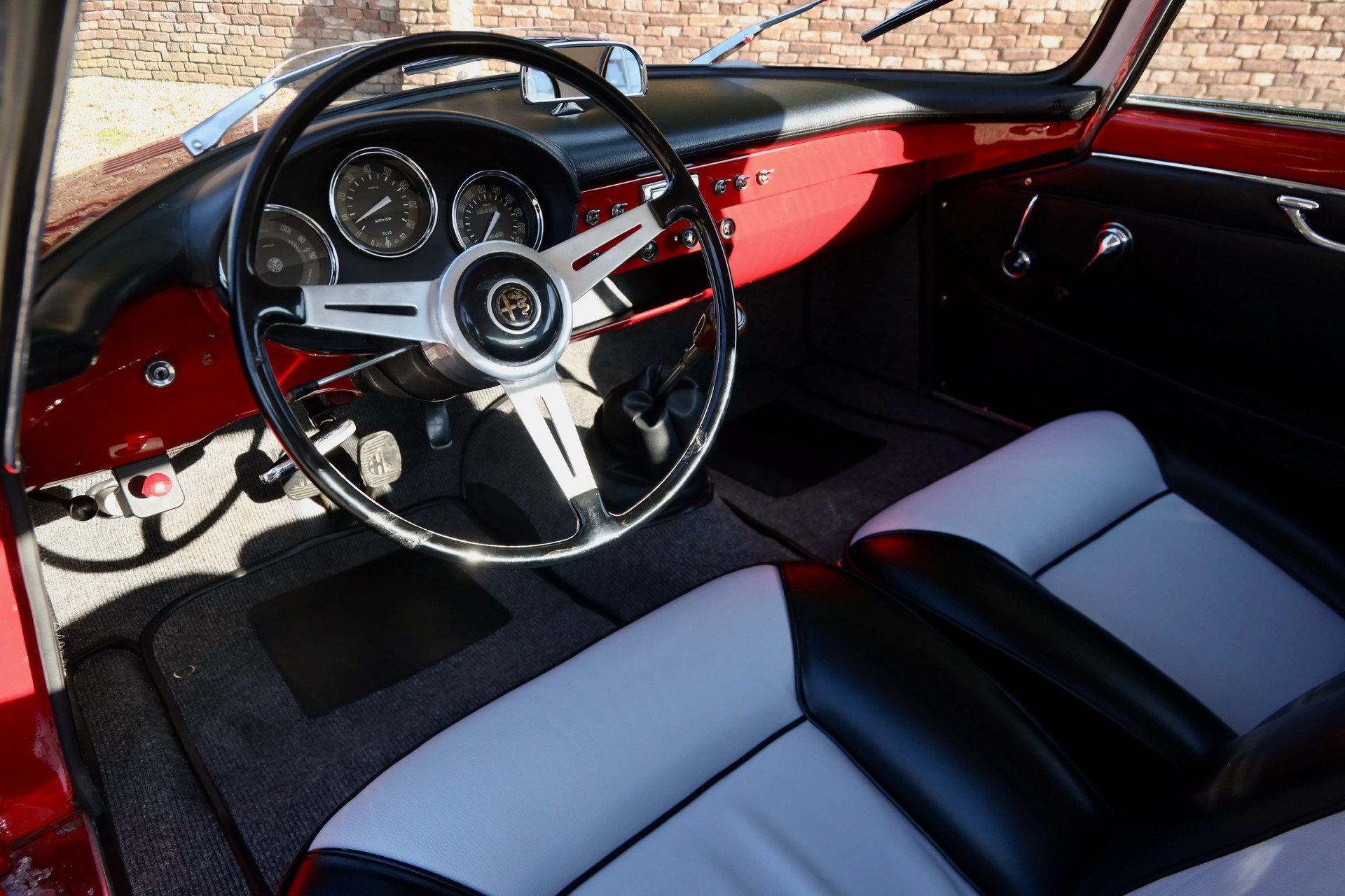 Wat dit exemplaar extra bijzonder maakt? Zijn verhaal. Deze Alfa werd nieuw geleverd in 1961 in Rome en was vervolgens jarenlang in familiebezit in Palermo, tot 2015. Hij werd in het verleden gerestaureerd maar met oog voor behoud van originaliteit. Zodoende werd deze Alfa slechts één keer overgespoten, in de originele kleur Alfa Rosso. De lak werd heel dun aangebracht om het originele karakter te behouden. Daarnaast werd het interieur opnieuw bekleed.