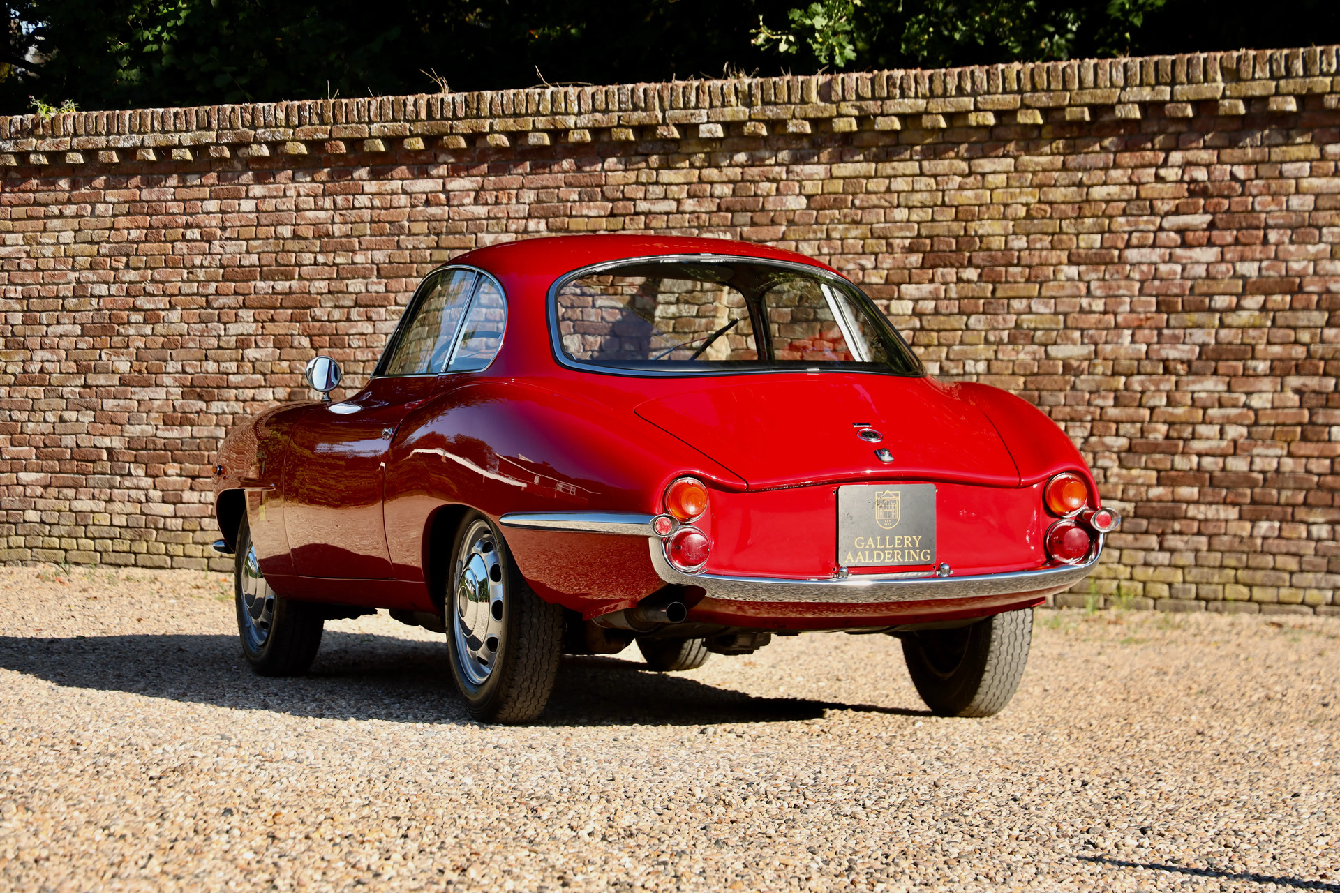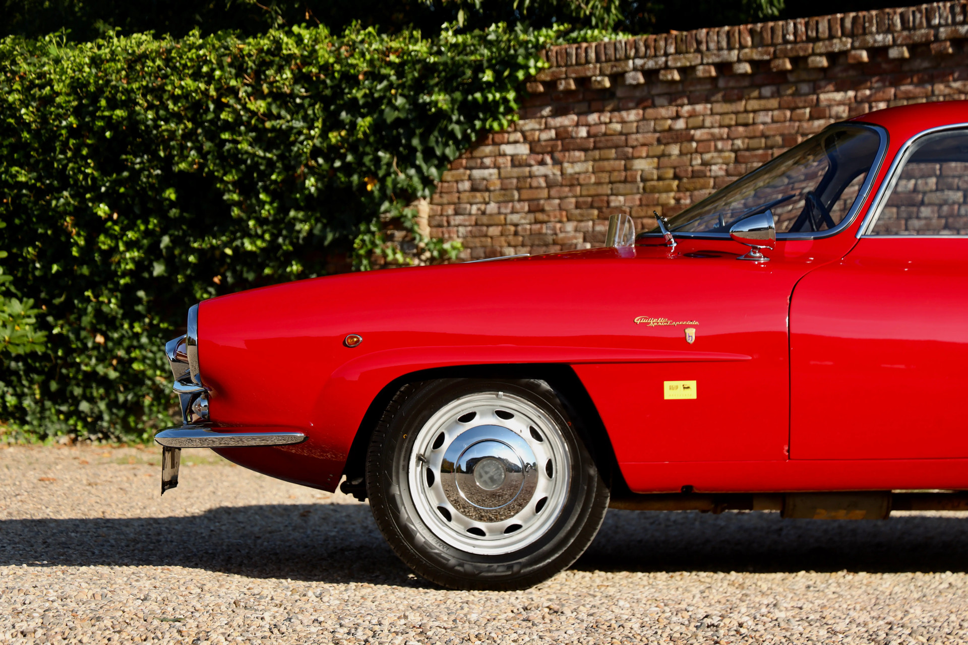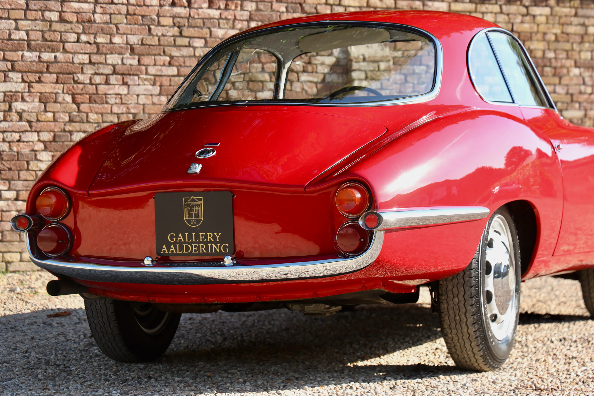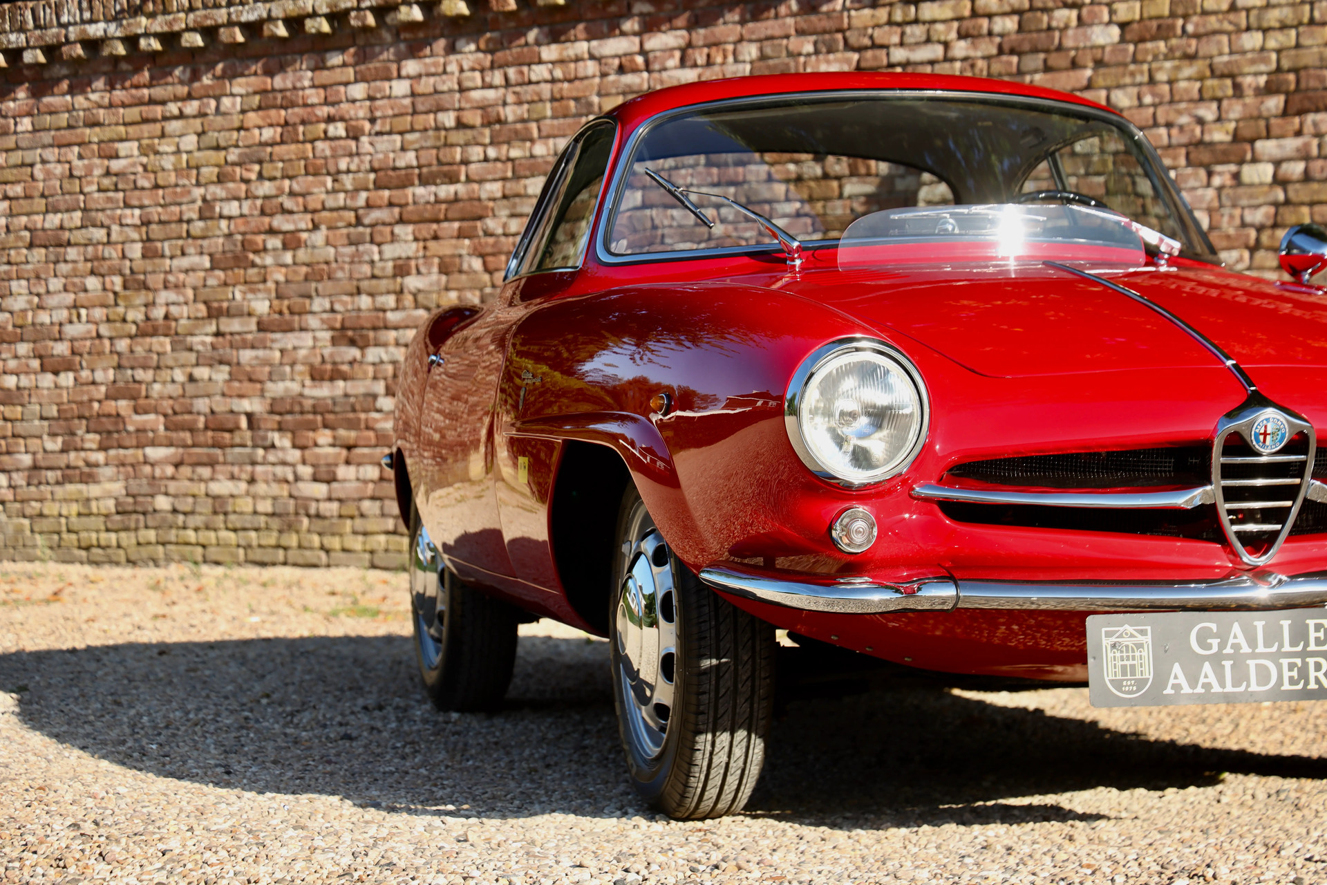 Wat dit exemplaar extra bijzonder maakt? Zijn verhaal. Deze Alfa werd nieuw geleverd in 1961 in Rome en was vervolgens jarenlang in familiebezit in Palermo, tot 2015. Hij werd in het verleden gerestaureerd maar met oog voor behoud van originaliteit. Zodoende werd deze Alfa slechts één keer overgespoten, in de originele kleur Alfa Rosso. De lak werd heel dun aangebracht om het originele karakter te behouden. Daarnaast werd het interieur opnieuw bekleed.