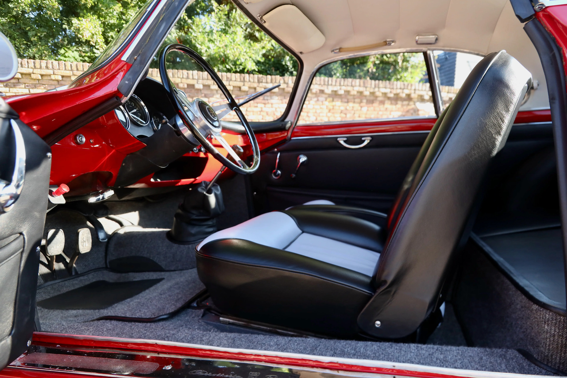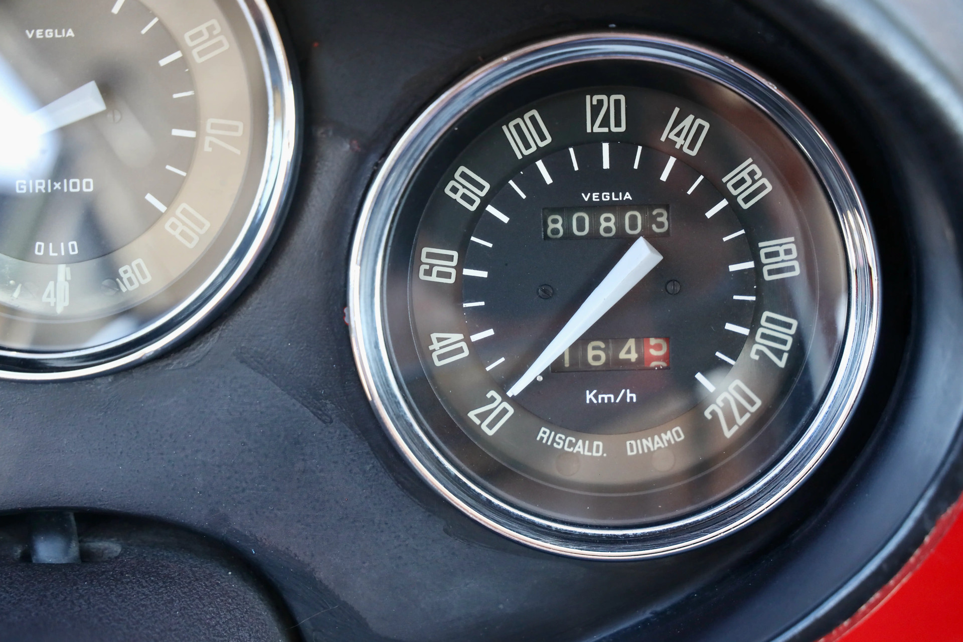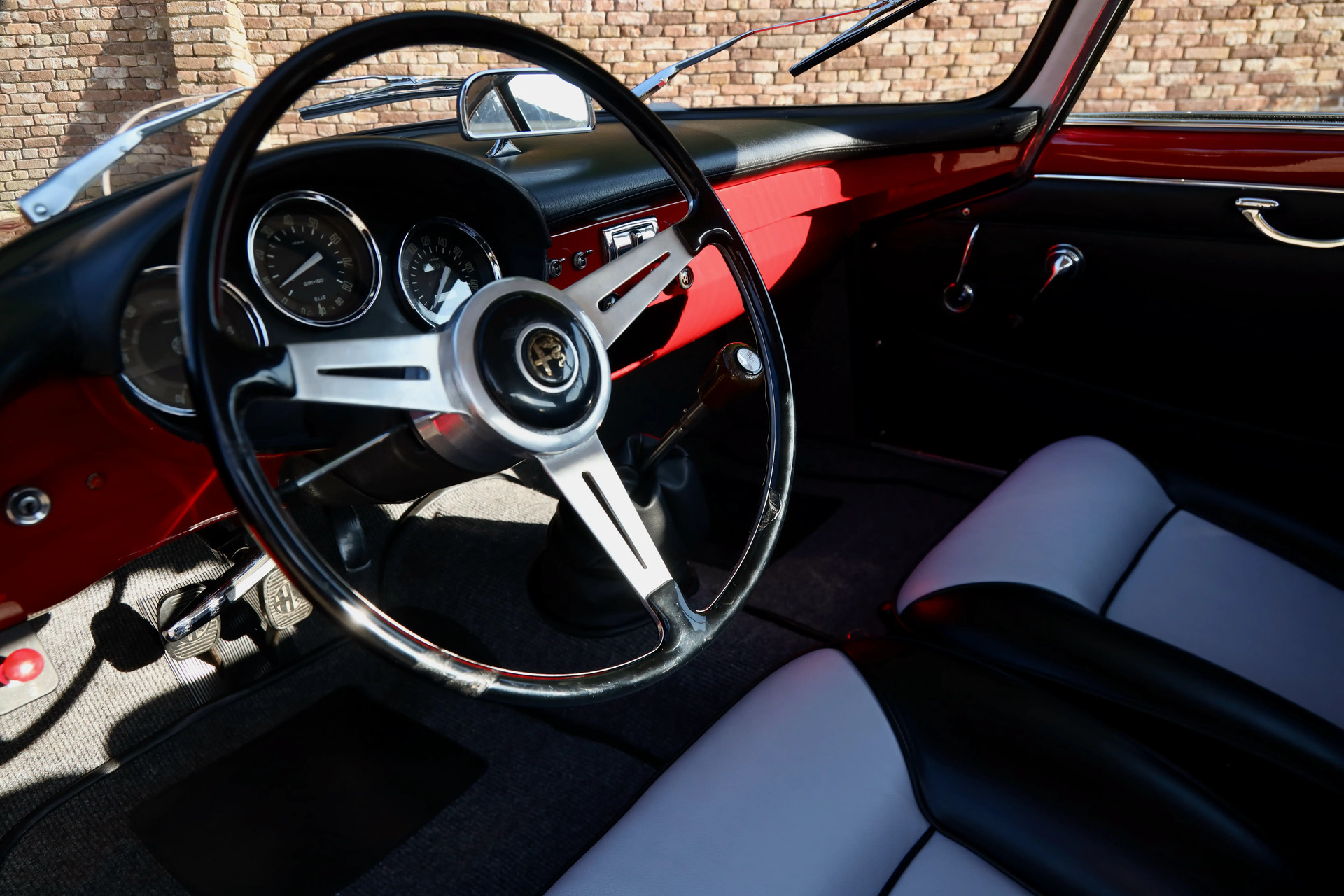 What makes this particular example stand out is its story. Delivered new in Rome in 1961, it remained in the same family in Palermo until 2015. It underwent a restoration in the past, always with respect for originality. The Alfa has only ever been repainted once, in its original Alfa Rosso, with the paint applied in a deliberately thin layer to preserve its character. The interior was also reupholstered, striking a careful balance between freshness and authenticity.