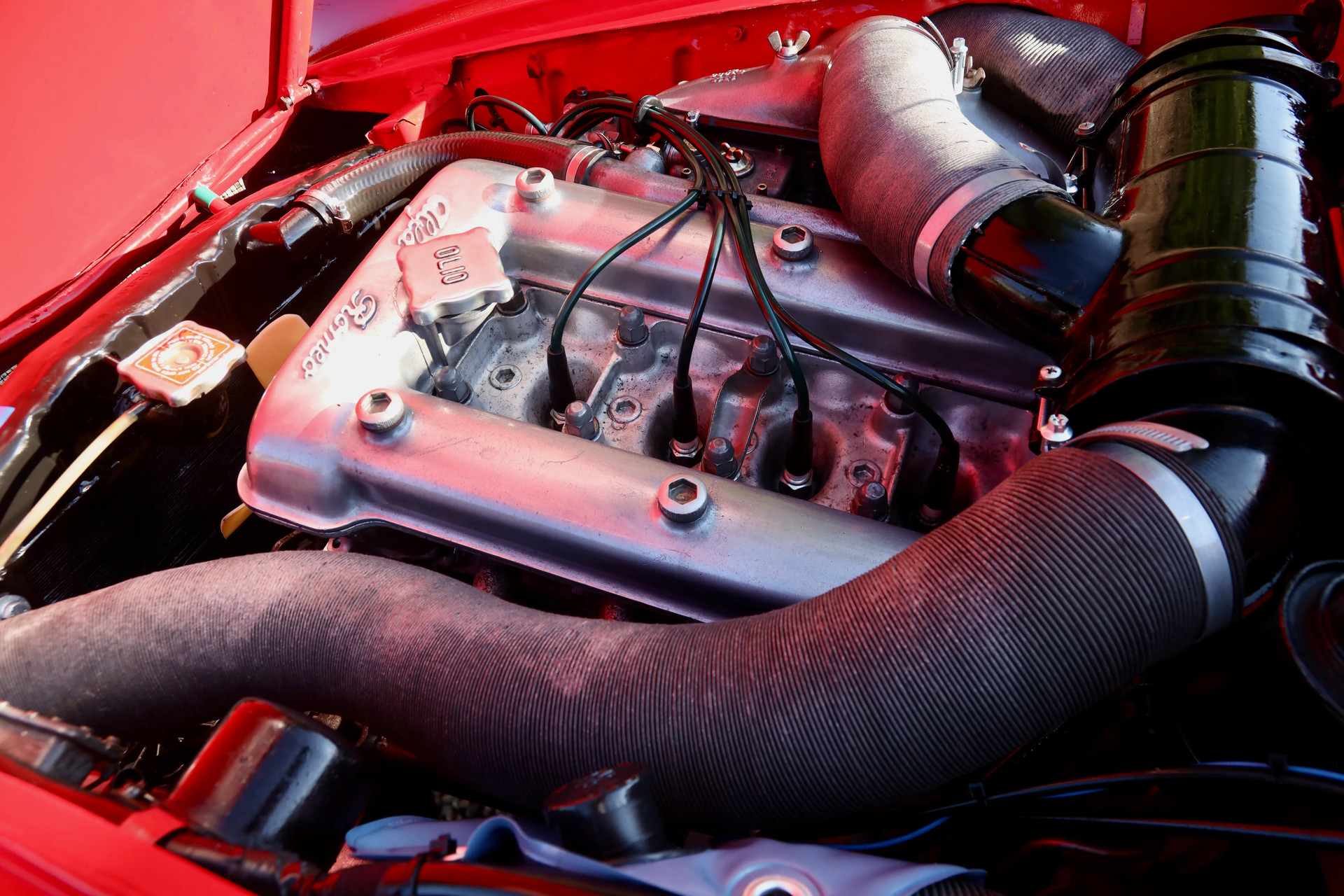 Sous le capot bat le cœur d’une vraie voiture de conducteur : un quatre cylindres en aluminium de 1 300 cm³ alimenté par deux carburateurs Weber. Il développe environ 116 chevaux, largement suffisant pour propulser ce coupé biplace ultraléger à près de 200 km/h. À l’époque, c’était nettement plus rapide qu’une Giulietta Sprint classique.