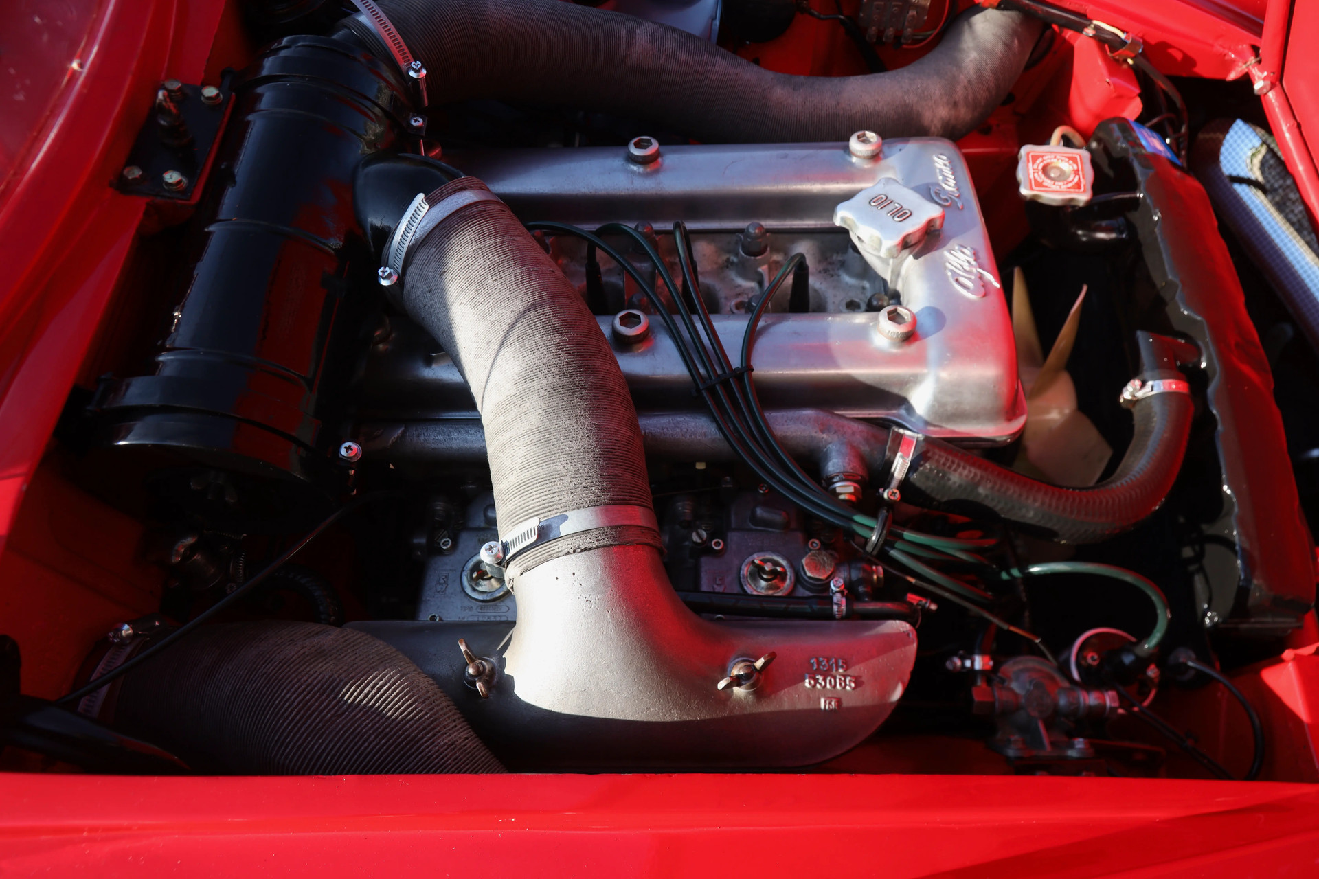 Onder de motorkap schuilt het hart van een echte rijder: een 1.300 cc viercilinder vervaardigd uit aluminium en voorzien van twee Weber carburateurs. Goed voor circa 116 pk, wat meer dan voldoende is om deze lichtgewicht tweezitter tot bijna 200 km/u te stuwen. Dit was destijds aanzienlijk sneller dan de reguliere Giulietta Sprint.