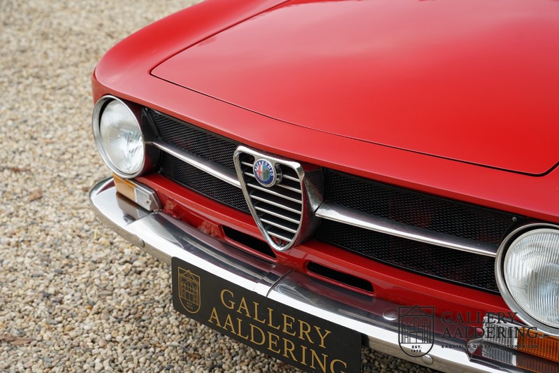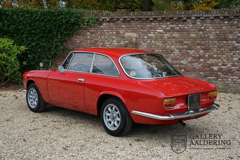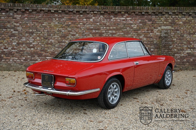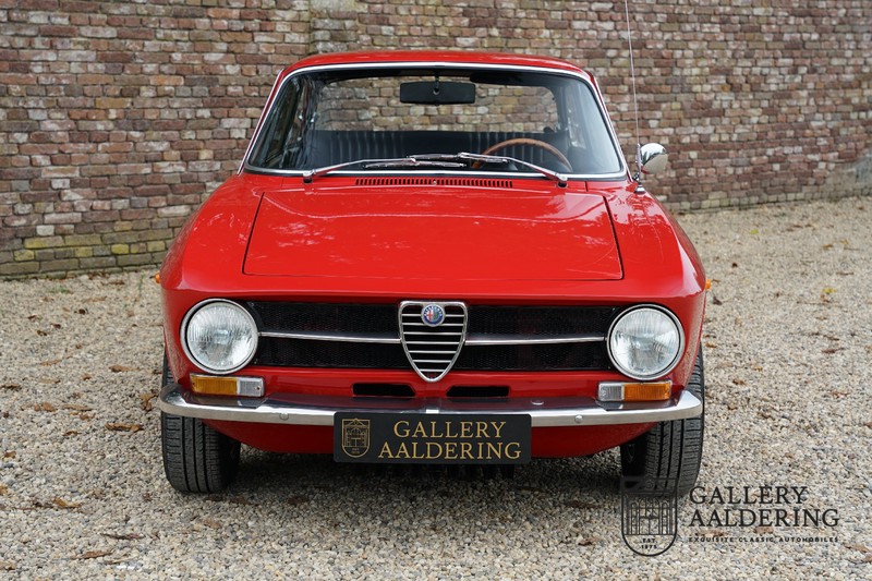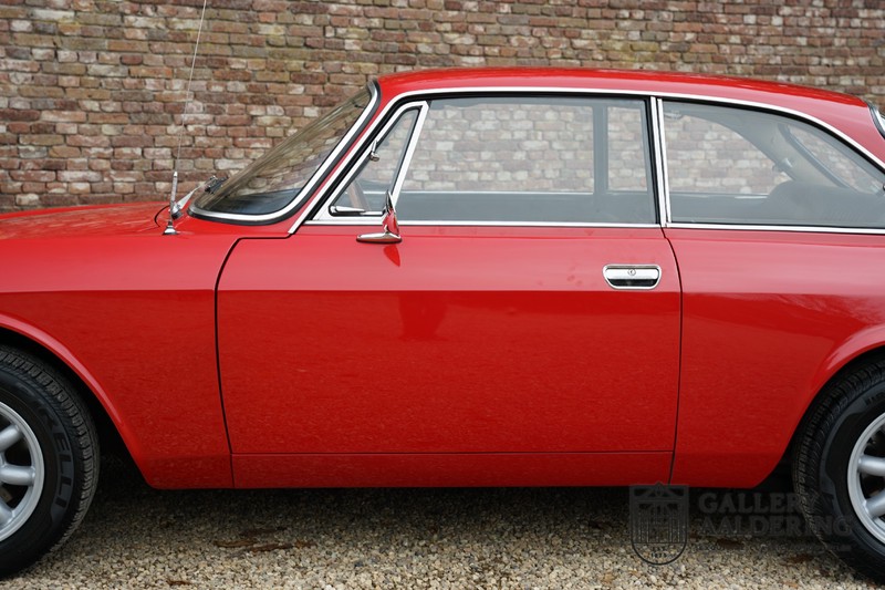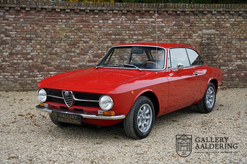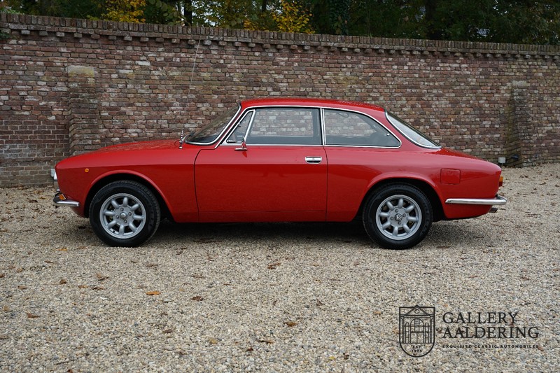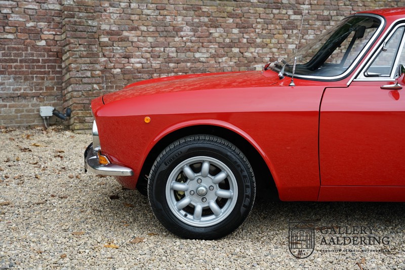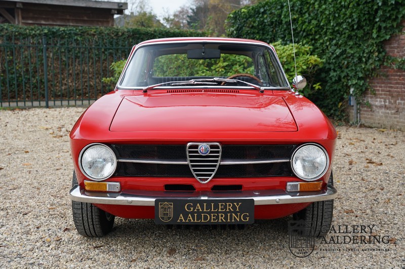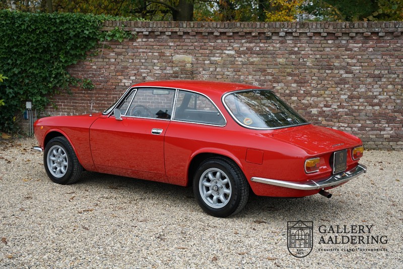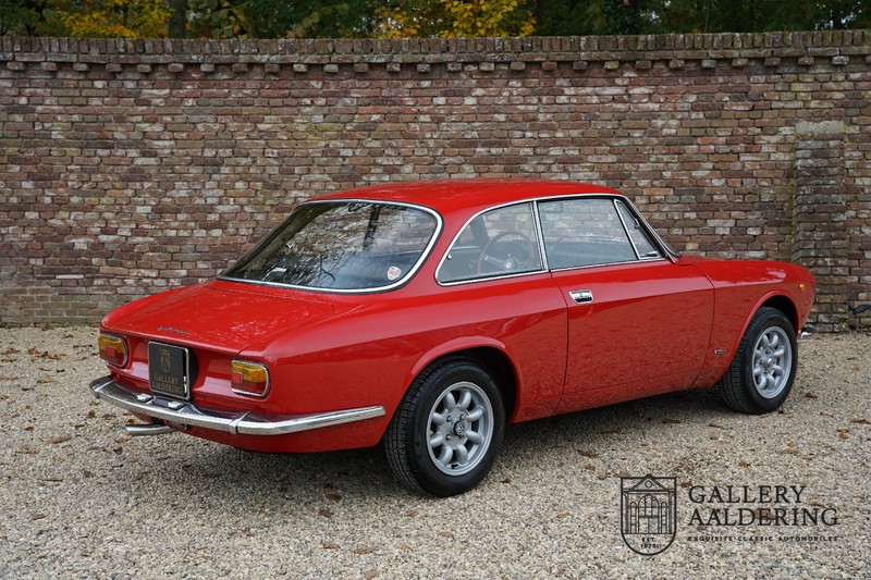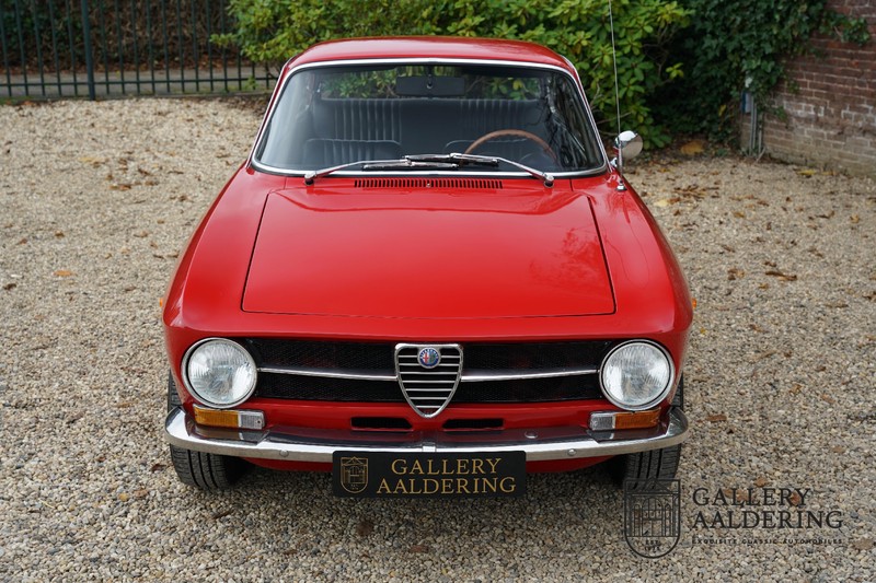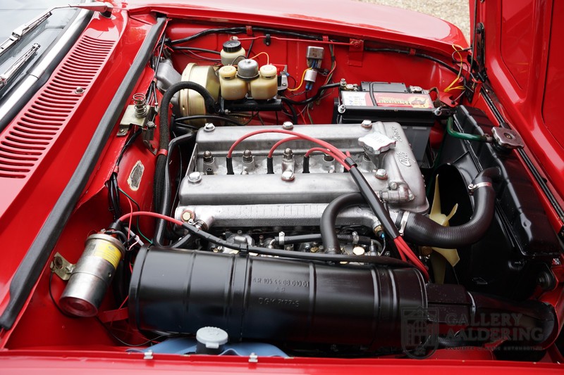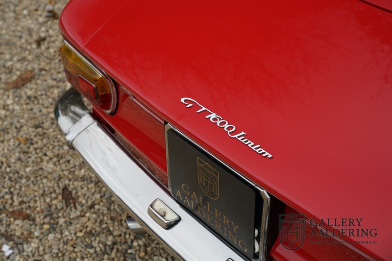 Italian cars are simply faster when they are red, those are facts. In this case it concerns an original Dutch delivered Alfa Romeo GT Junior 1600 from 1973. This car is also fast, not only because of the red color but even more because of the recently completely overhauled engine. The engine was then re-tuned on the dynamometer and runs beautifully and is very powerful at all speeds.