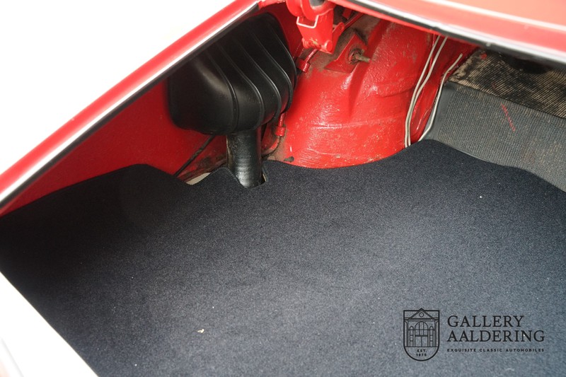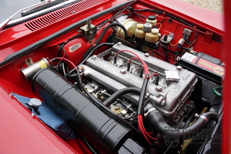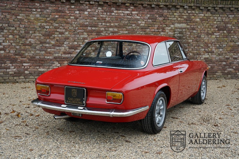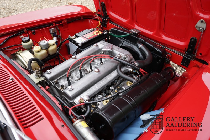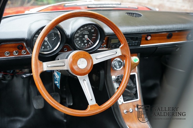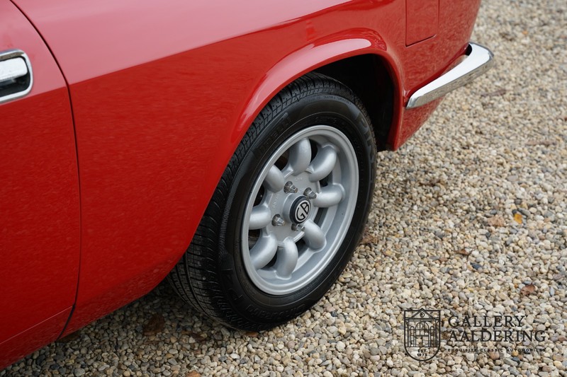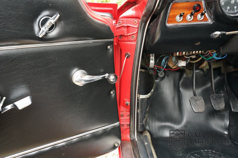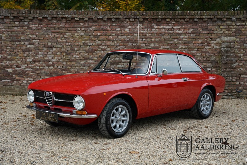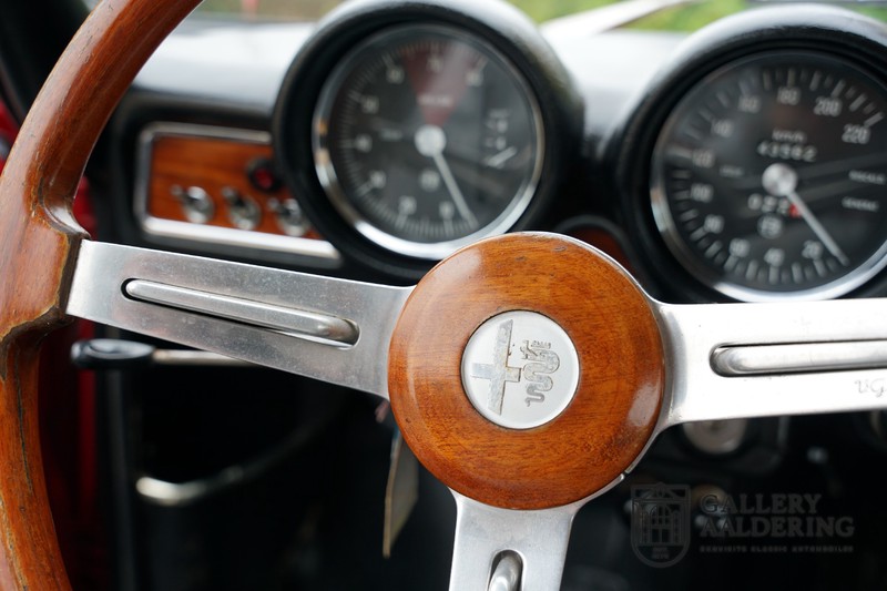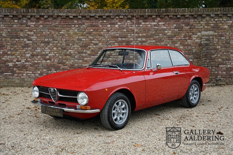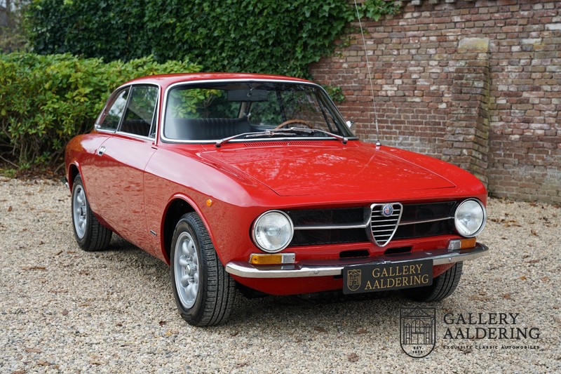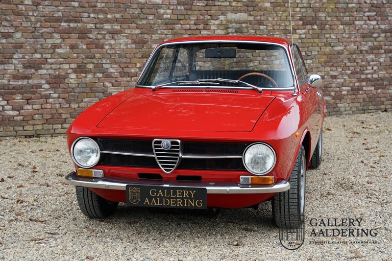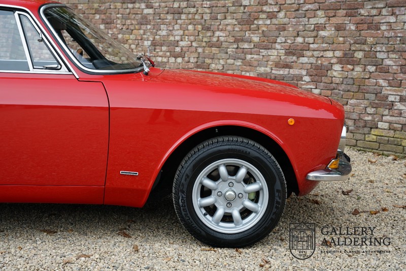 Italian cars are simply faster when they are red, those are facts. In this case it concerns an original Dutch delivered Alfa Romeo GT Junior 1600 from 1973. This car is also fast, not only because of the red color but even more because of the recently completely overhauled engine. The engine was then re-tuned on the dynamometer and runs beautifully and is very powerful at all speeds.