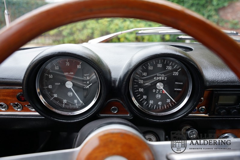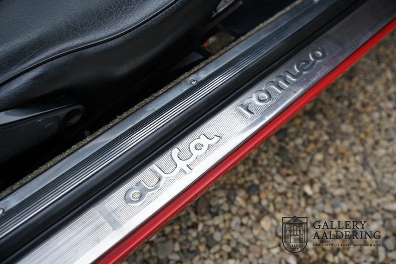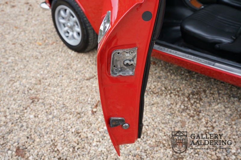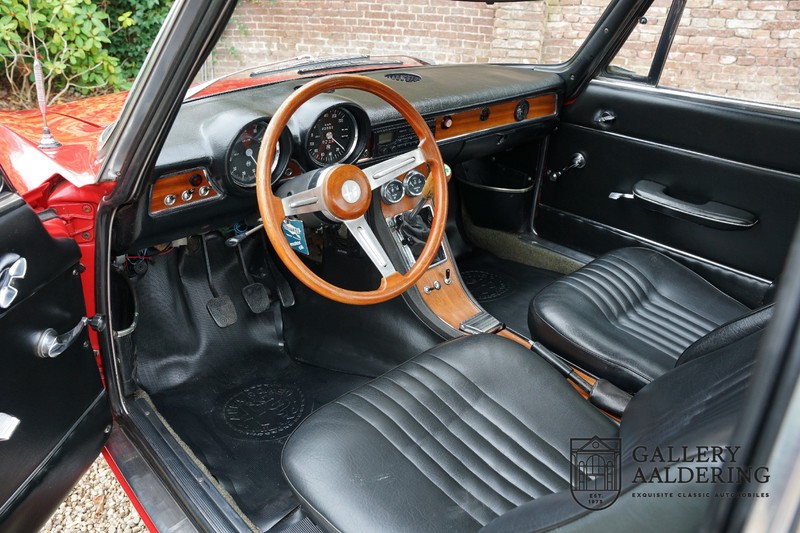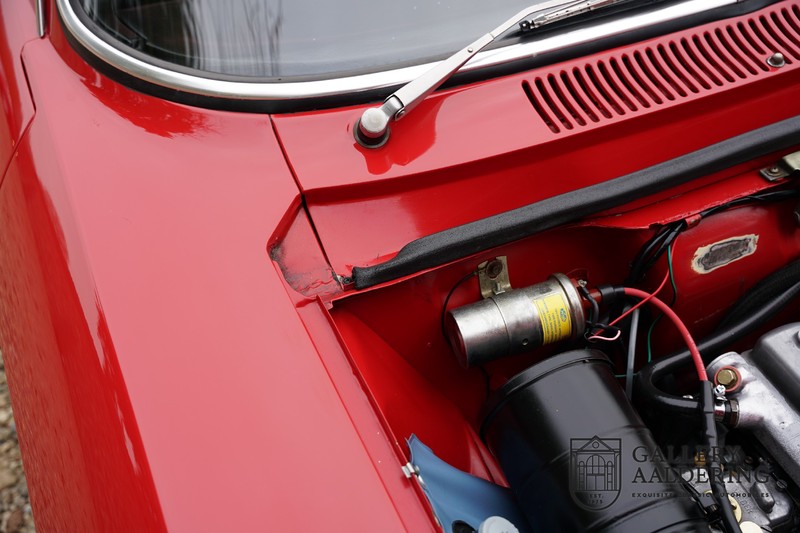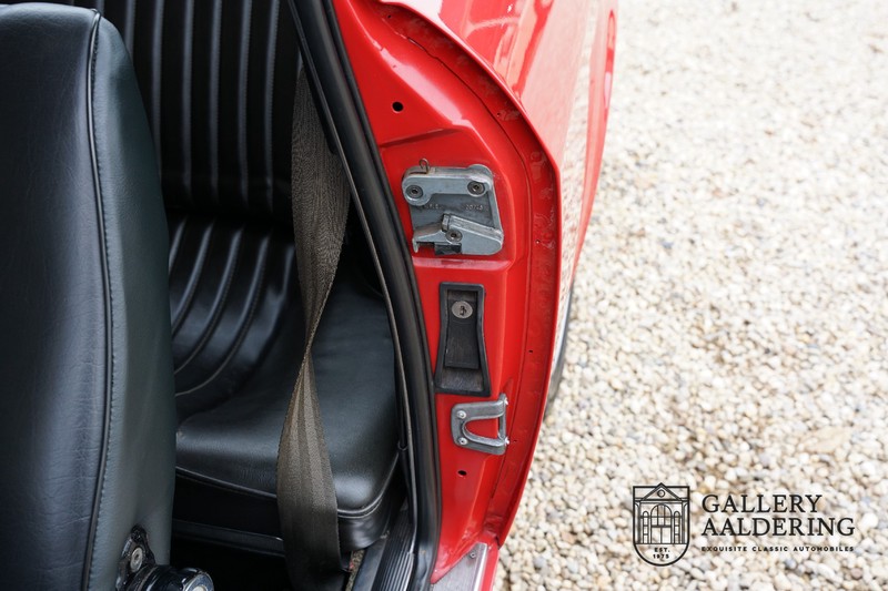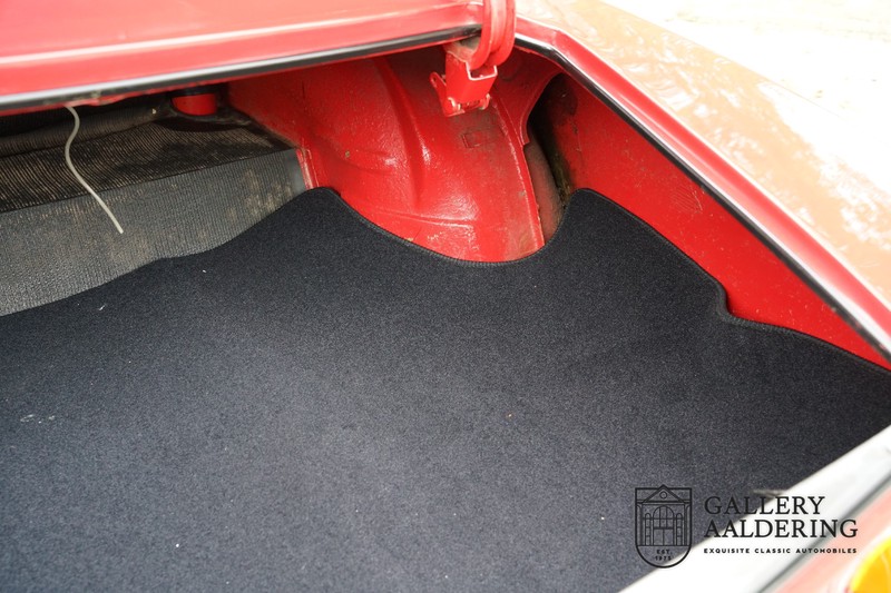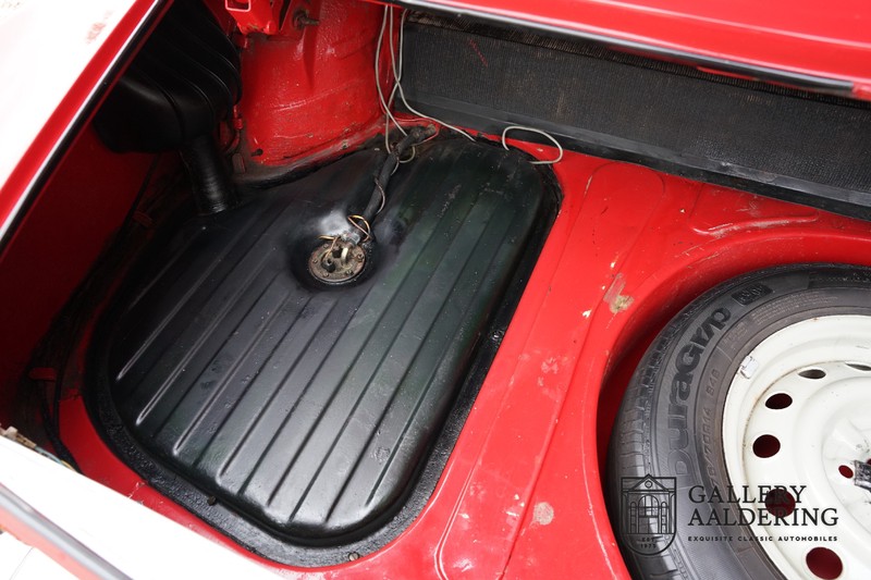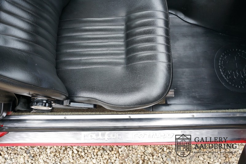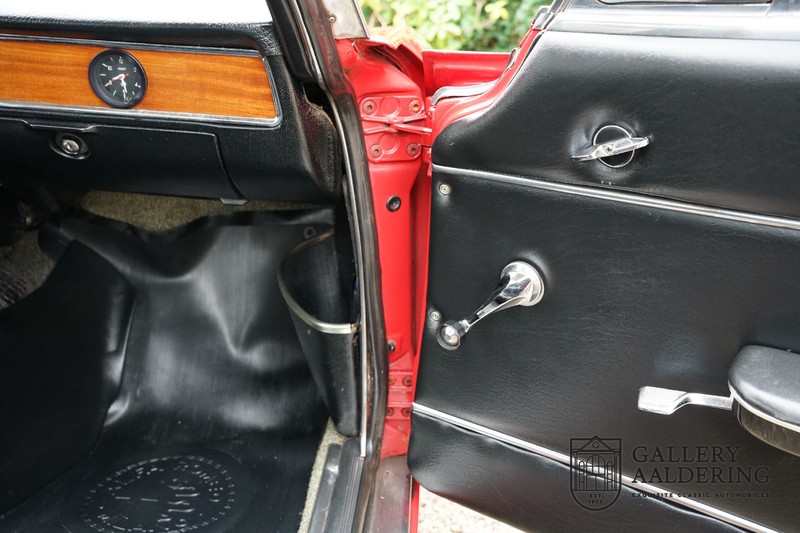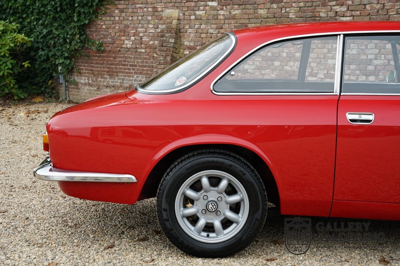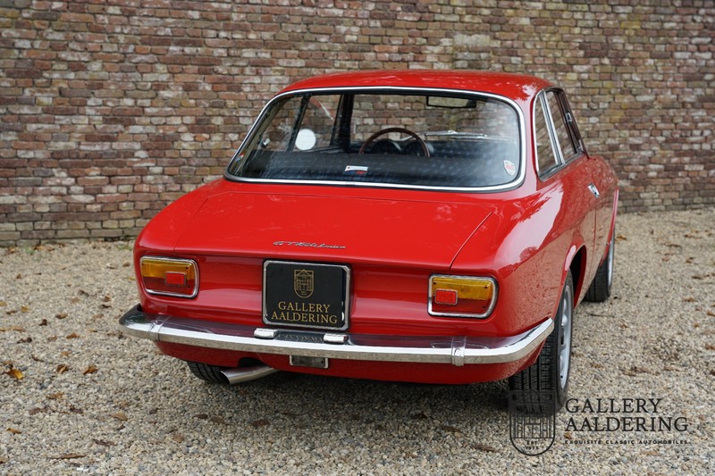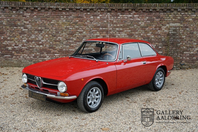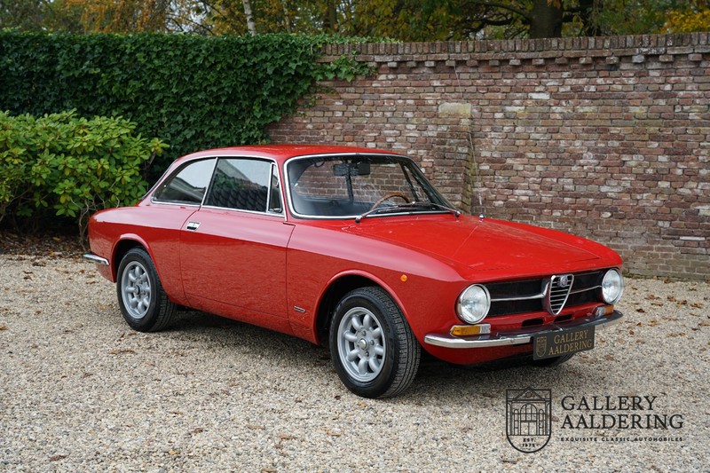 Italian cars are simply faster when they are red, those are facts. In this case it concerns an original Dutch delivered Alfa Romeo GT Junior 1600 from 1973. This car is also fast, not only because of the red color but even more because of the recently completely overhauled engine. The engine was then re-tuned on the dynamometer and runs beautifully and is very powerful at all speeds.