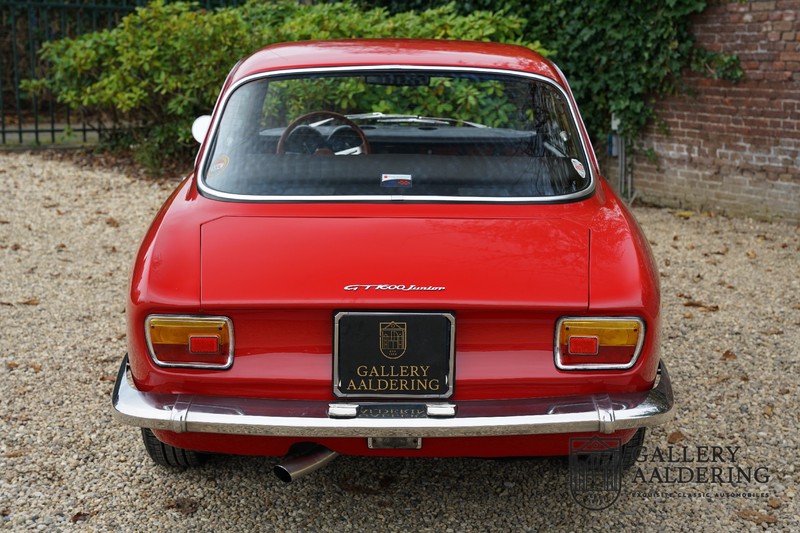 Italiaanse auto’s zijn gewoon sneller als ze rood zijn, dat zijn feiten. In dit geval betreft het hier een origineel Nederlands geleverde Alfa Romeo GT Junior 1600 uit 1973. Dit exemplaar is ook snel, niet alleen vanwege de rode kleur maar meer nog door de recentelijk volledig gereviseerde motor. De motor is daarna opnieuw afgesteld op de rollenbank en loopt prachtig en is zeer krachtig bij alle toerentallen.