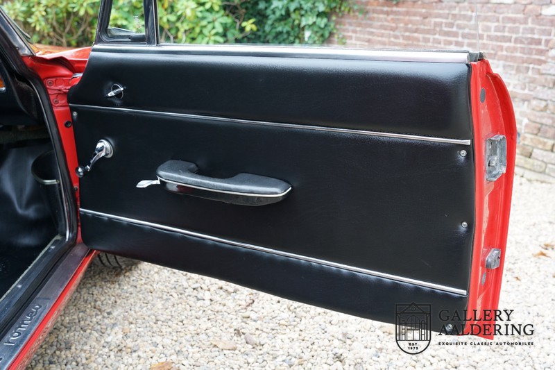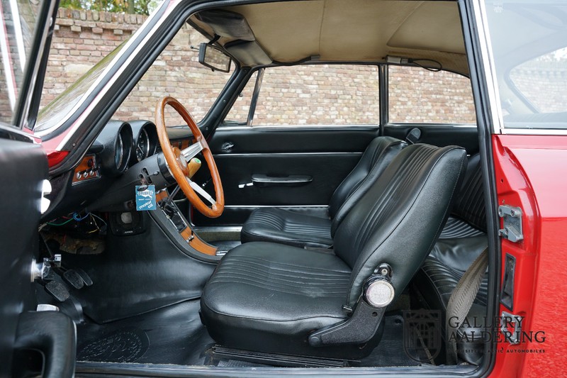 This GT Junior has been fully restored in the past and has been very well maintained since then. The car is fitted with beautiful original thin sheet metal and has neat panel fittings. The paint was well sprayed at the time and, apart from some minor signs of use, still looks very good. The car is on Crommodora-like rims surrounded by good Pirelli tires in the right sizes.