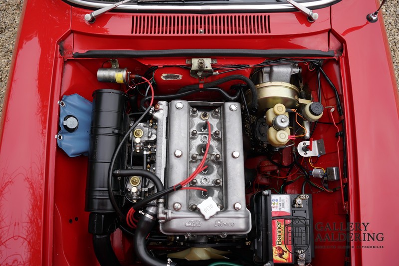 Wie bereits angedeutet, wurde die Technik komplett überarbeitet. Der Motor ist auf den Prüfstand eingestellt und leistet 100 PS an die Hinterräder, hervorragende Werte für einen 1600er. Der Motor ist nicht nur kraftvoll, sondern erzeugt durch die beiden Doppel-Weber-Vergaser auch einen schönen Sound. Der Alfa Twin Cam Motor ist einfach unübertroffen und immer noch eine Institution unter Autoliebhabern. Auch die Bremsanlage und das Fahrwerk sind bei diesem Auto gut gepflegt und verleihen dem Auto ein sehr gutes Fahrverhalten. Der Motor liegt vorne und die Antriebskraft geht an die Hinterräder, wie es sich für ein echtes Sportauto gehört.