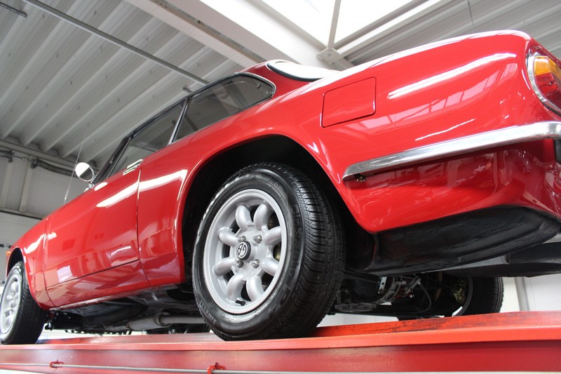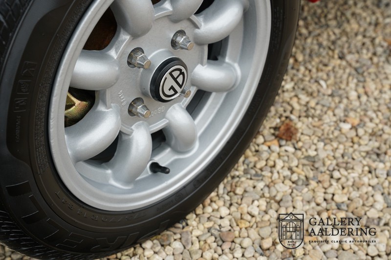 Dieser GT Junior wurde schon mal komplett restauriert und seitdem penibel gewartet. Die schöne Karosserie hat dünnes Blech und korrekte Passungen. Die Lackierungsarbeiten wurden damals fachmännisch durchgeführt. Der Lack sieht bis auf ein paar leichte Gebrauchsspuren noch sehr gut aus. Das Auto steht auf Crommodora-ähnlichen Felgen mit guten Pirelli-Reifen in den richtigen Größen.