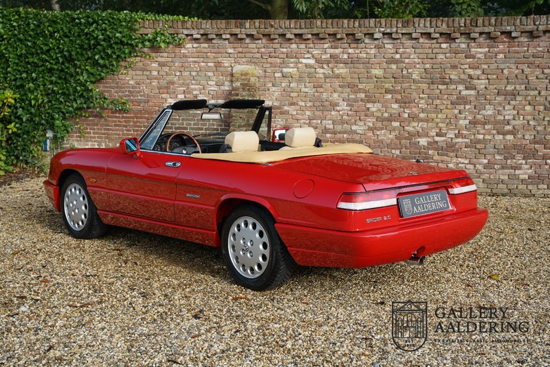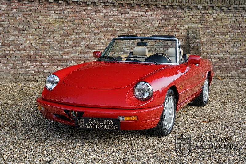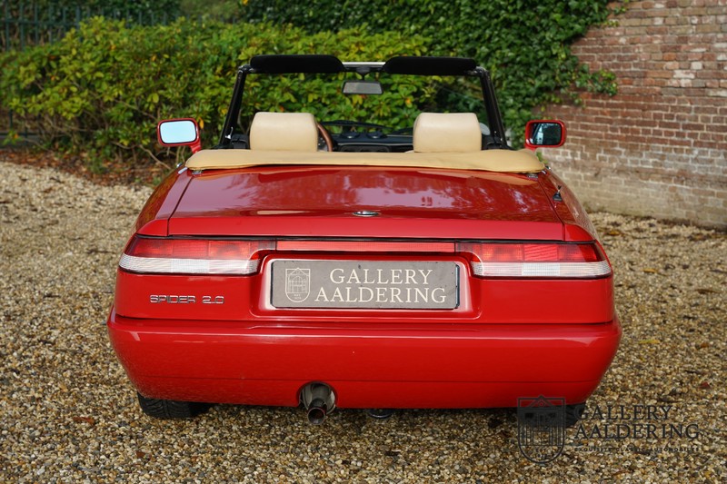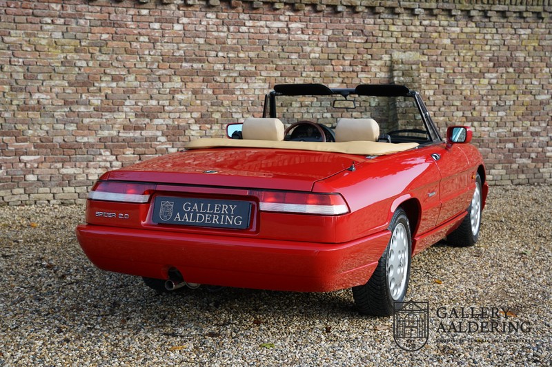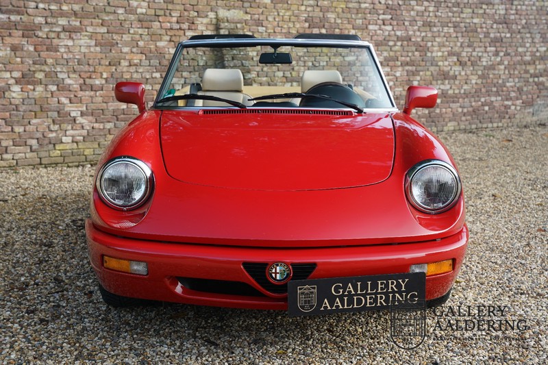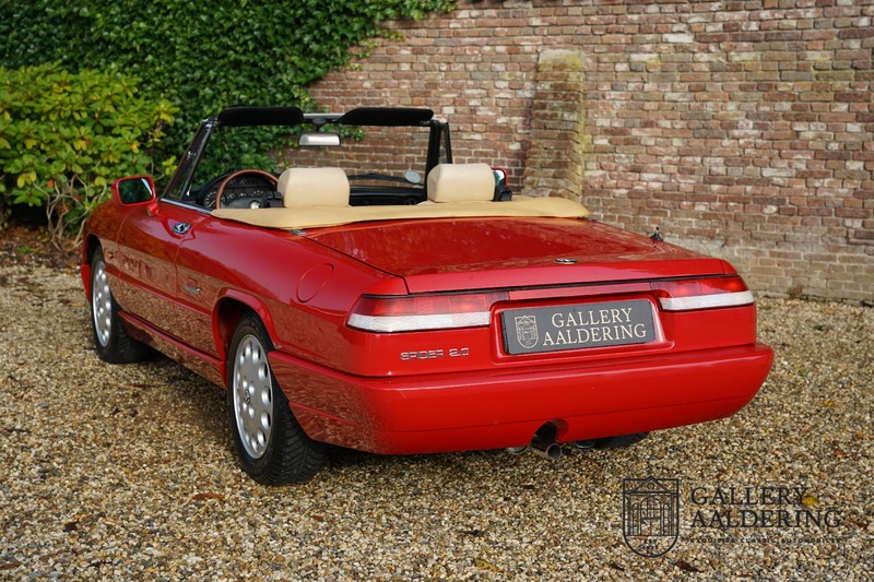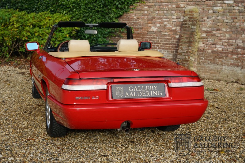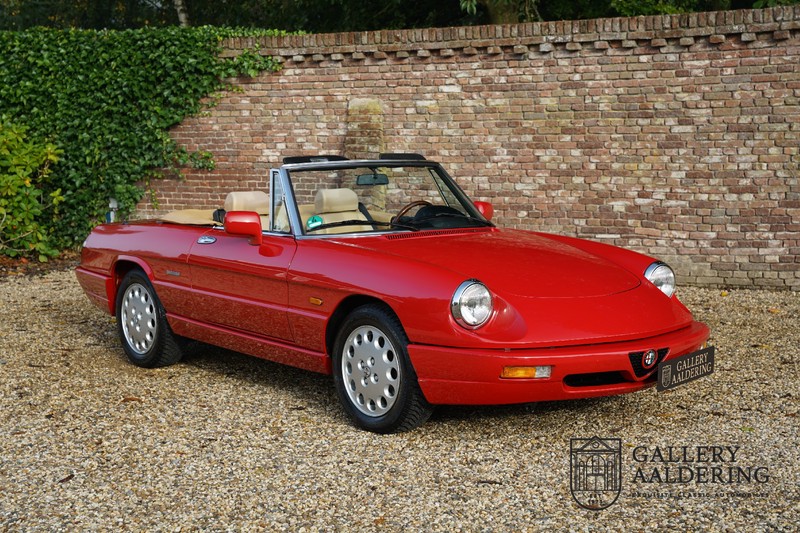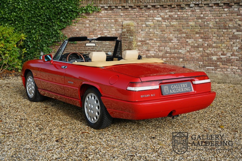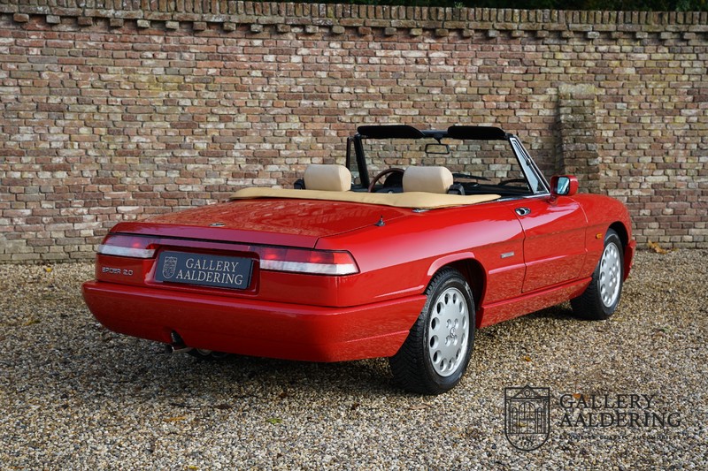 Dit bestaat niet! Maar we hebben er toch echt één! Ongehoord! Een Alfa Romeo Spider 2.0 uit 1991, rechtstreeks afkomstig van de eerste eigenaar én in de eerste lak. Dat is werkelijk ongehoord zeldzaam. Meneer Graetz bestelde de auto bij de Alfa Romeo dealer in Dusseldorf voor zijn vrouw. Hij ruilde haar oude Alfa Romeo Spider in en het was tevens de laatste auto die mevrouw Graetz van meneer Graetz kreeg, niet omdat de liefde voorbij was maar omdat de Alfa Romeo zó goed beviel dat de drang naar een nieuwe auto eigenlijk 31 jaar lang niet heeft bestaan. De auto werd eind 1990 besteld en voor het eerst op kenteken gezet op 21 februari 1991 de kilometerstand bedraagt slechts 101.000 kilometer.