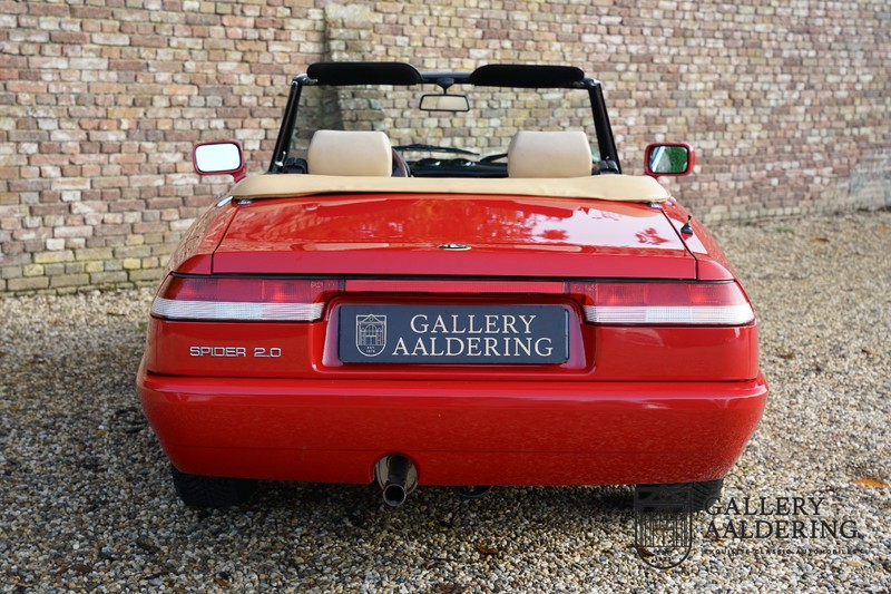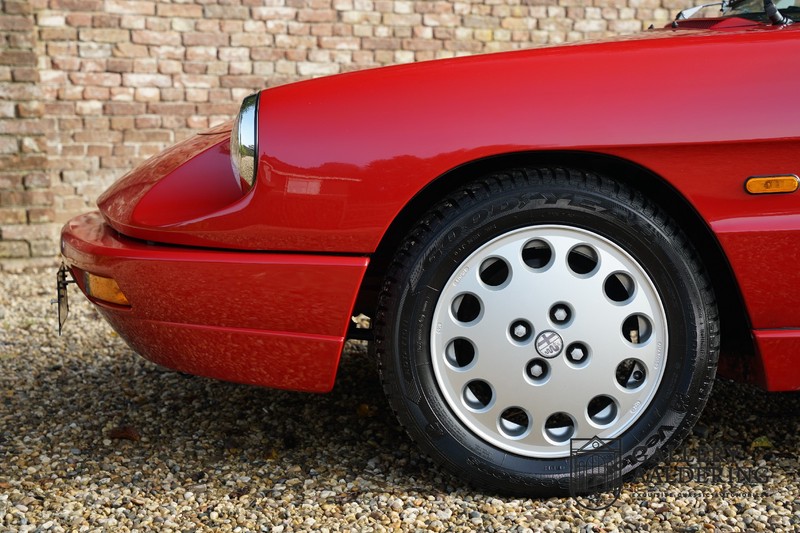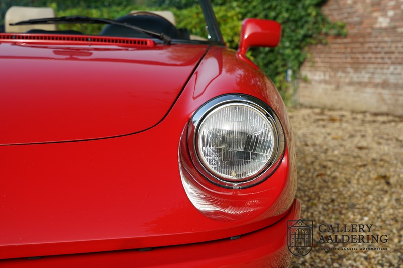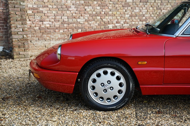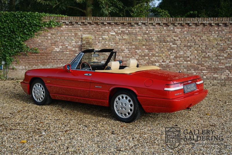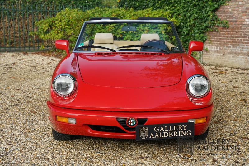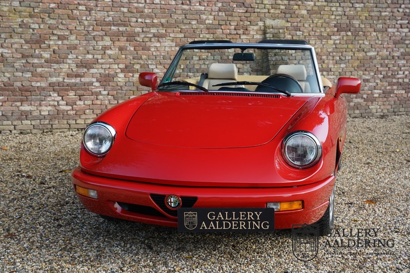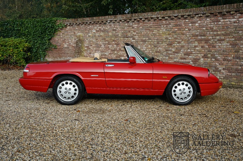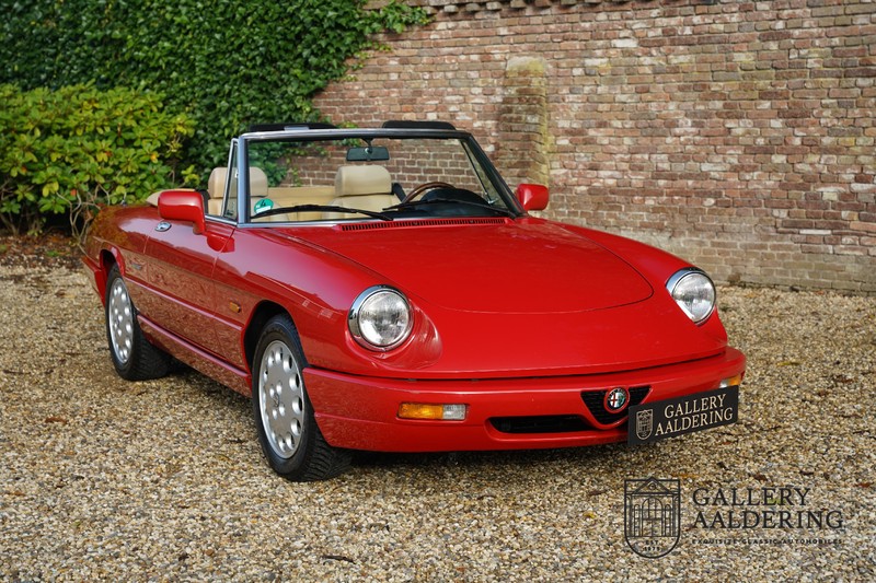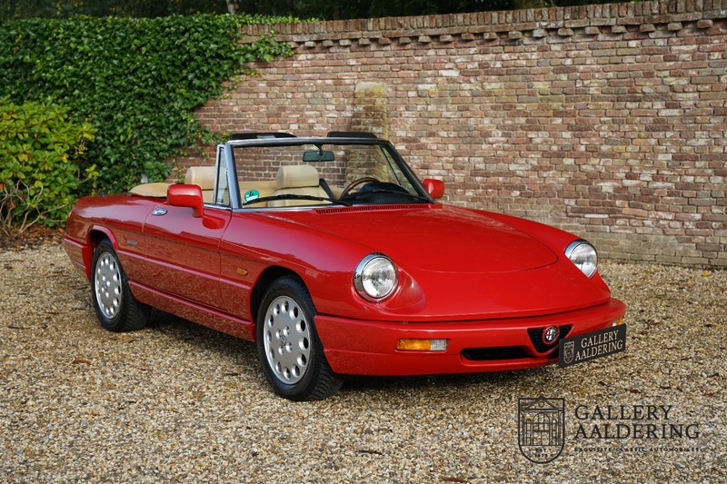 Dit bestaat niet! Maar we hebben er toch echt één! Ongehoord! Een Alfa Romeo Spider 2.0 uit 1991, rechtstreeks afkomstig van de eerste eigenaar én in de eerste lak. Dat is werkelijk ongehoord zeldzaam. Meneer Graetz bestelde de auto bij de Alfa Romeo dealer in Dusseldorf voor zijn vrouw. Hij ruilde haar oude Alfa Romeo Spider in en het was tevens de laatste auto die mevrouw Graetz van meneer Graetz kreeg, niet omdat de liefde voorbij was maar omdat de Alfa Romeo zó goed beviel dat de drang naar een nieuwe auto eigenlijk 31 jaar lang niet heeft bestaan. De auto werd eind 1990 besteld en voor het eerst op kenteken gezet op 21 februari 1991 de kilometerstand bedraagt slechts 101.000 kilometer.