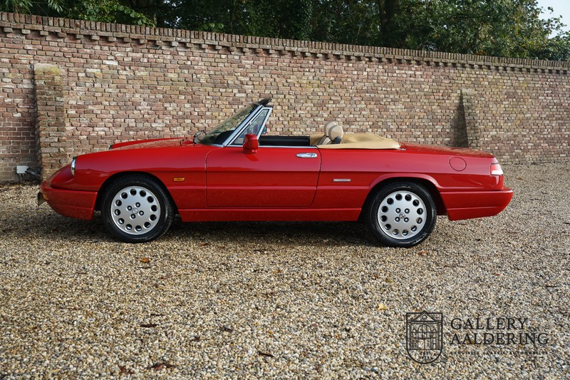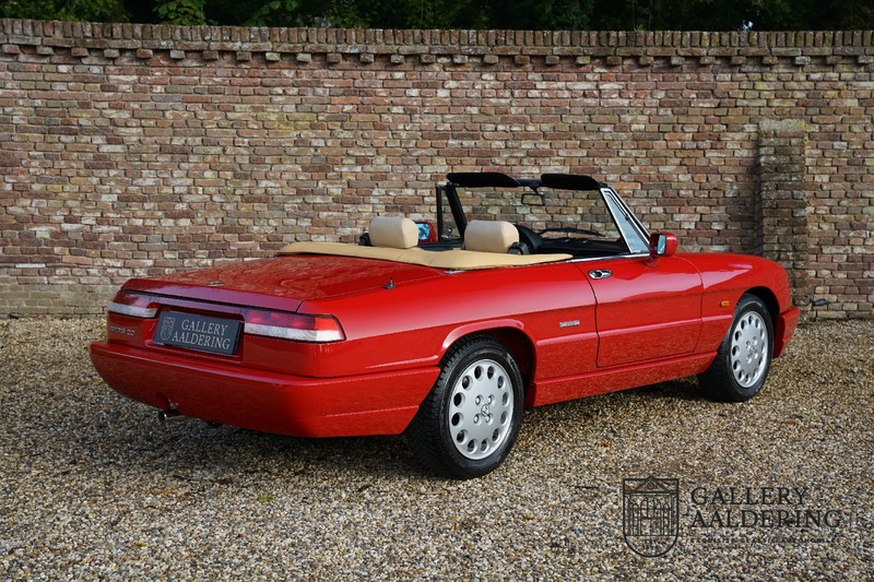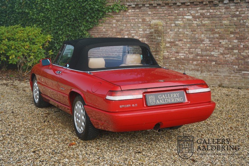 This is incredible! Yet we still have been able to get one. Outrageous! A one-owner 1991 Alfa Romeo Spider 2.0 with its original prime coat of paint. That is truly incredibly rare. Mr Graetz ordered this car from the Alfa Romeo garage in Dusseldorf for his wife. He exchanged her old Alfa Romeo Spider for this new one. This was the one and only car he bought for her, not because he had fallen out of love but because they loved this Alfa Romeo so much they did not look at any other car for 31 years. The order for the car went out in 1990 and was registered on the 21st February 1991. The current mileage is a mere 101,000 km.