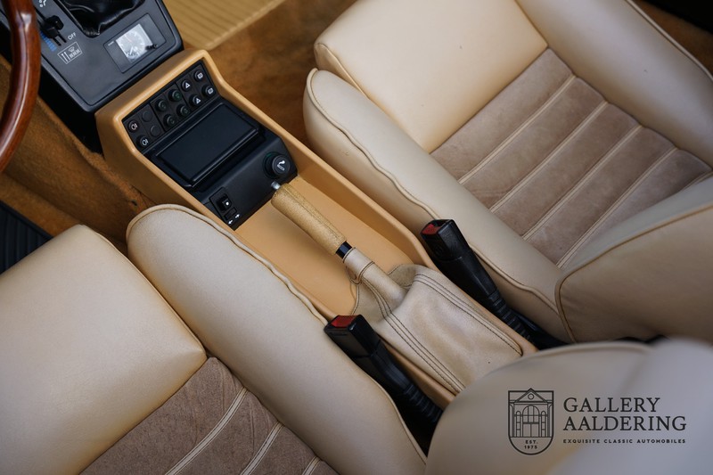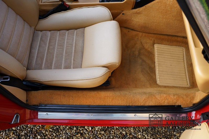 Der Innenraum ist mit schwarzen Teppichen und beigem Leder bezogen und mit einem schönen Nardi-Holzlenkrad und mit einem passendem Schaltknauf ausgestattet. Das Interieur ist genau wie das Exterieur des Autos komplett original und befindet sich in einem Top-Zustand. Wir können nur sagen, dass der Erstbesitzer sich außergewöhnlich gut um das Auto gekümmert hat und nicht nur die Technik gut gewartet hat, sondern sich auch um das Interieur gekümmert hat und das sieht man. Das Leder ist noch sehr geschmeidig und die schöne Instrumente sehen alle aus wie neu und funktionieren selbstverständlich einwandfrei