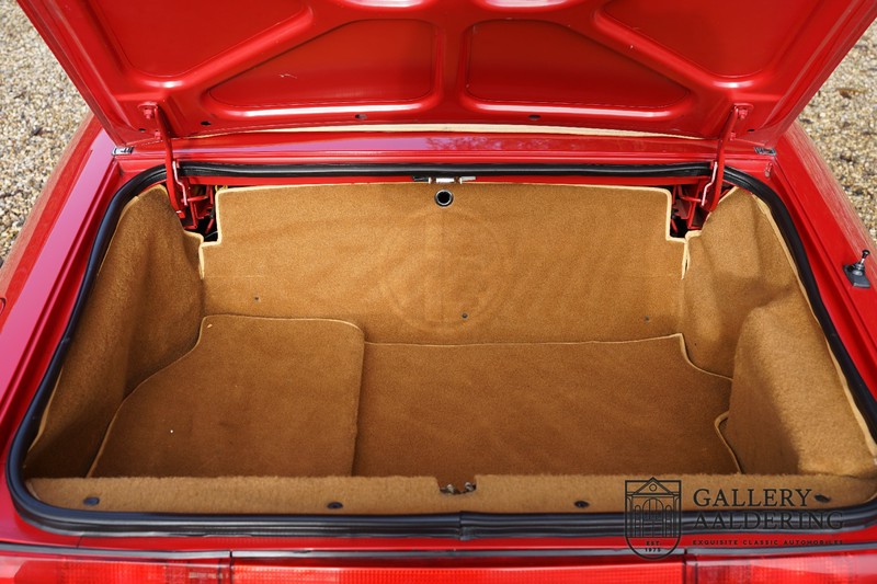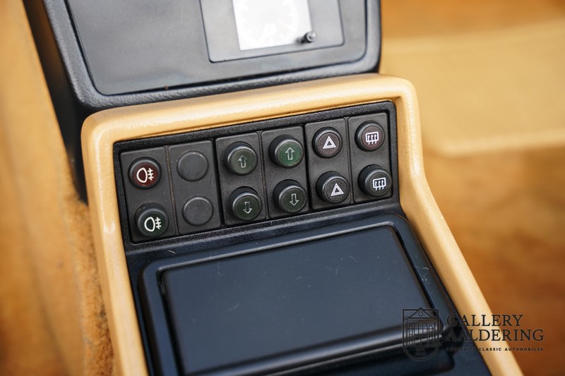 Het interieur is bekleed met zwarte tapijten en beige leder en voorzien van een prachtig houten Nardi stuurwiel met bijpassende pookknop. Het interieur is net zoals de buitenzijde van de auto volledig origineel en verkeert in topstaat. We kunnen niet anders stellen dan dat de eerste eigenaar uitzonderlijk goed voor de auto heeft gezorgd en niet alleen de techniek goed heft onderhouden maar ook de binnenzijde keurig heeft verzorgd en dat is ook te merken. Het leder is nog altijd zeer soepel en de prachtig instrumenten zien er allemaal als nieuw uit en functioneren ook op die manier.