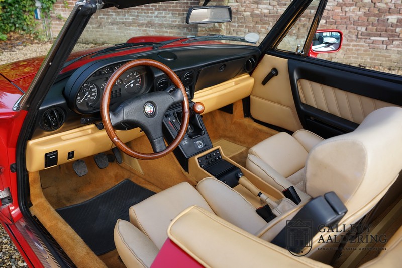 Mechanically the car has been perfectly maintained. The car has always been driven with respect so that the engine still runs perfectly. The 2.0 4-cylinder engine develops 126 Ps transferred through a delightfully working 5-speed gearbox. Good maintenance has kept this Spider running fantastically over the last three decennia, losing none of its driving exuberance. You won’t need much to derive maximum pleasure from this Alfa Romeo, good weather is a plus, a full tank would be quite handy and that is about it. Step in and enjoy!