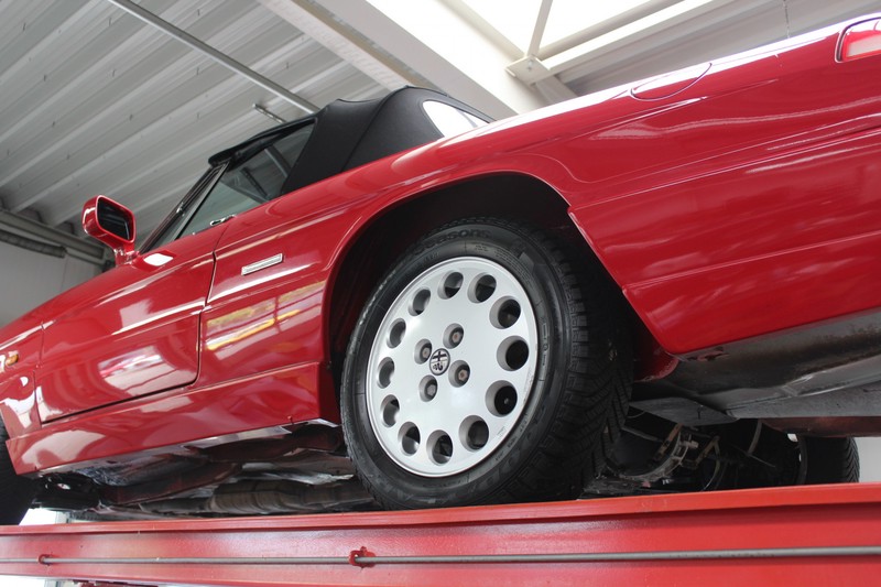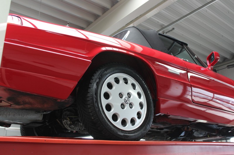Die Technik ist perfekt gewartet. Das Auto wurde immer schonend gefahren und der Motor läuft dementsprechend einwandfrei. Der 2.0 Liter 4-Zylinder leistet 126 PS und ist an ein wunderbar schaltendes 5-Gang-Getriebe gekoppelt. Dank guter Wartung läuft der Motor fantastisch und der Spider hat in den letzten 3 Jahrzehnten nichts an Fahrspaß verloren. Es braucht nicht viel, um diesen Alfa Romeo mit maximalem Vergnügen zu fahren, schönes Wetter ist von Vorteil und ein voller Tank ist auch praktisch, aber das war es auch schon. Steigen Sie ein und genießen Sie.