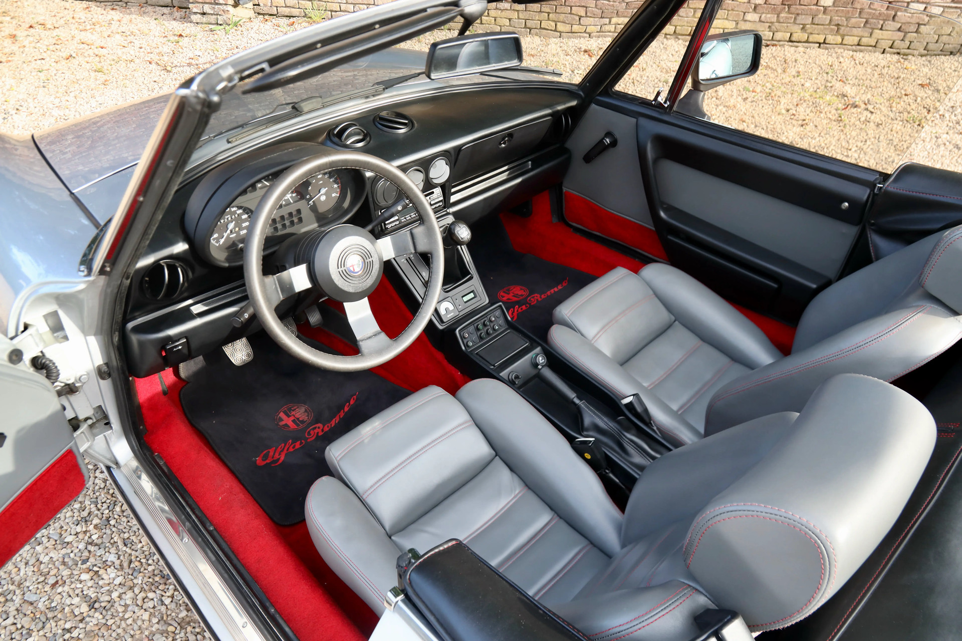 De auto is uitgevoerd in de kleur Argento, fraai gecombineerd met een grijslederen interieur. Een stijlvol en tijdloos geheel dat de klassieke lijnen van de Spider mooi benadrukt. De eerste registratie vond plaats in 1986 bij de Belgische importeur, waarna de auto in 1987 werd geleverd in Nederland. Sindsdien is de auto in handen geweest van slechts enkele eigenaren, die de Spider consequent en zorgvuldig hebben onderhouden.