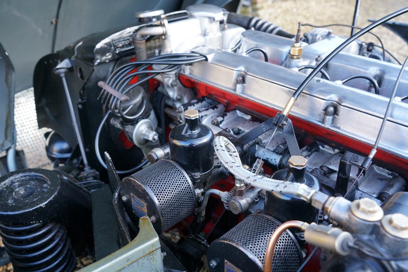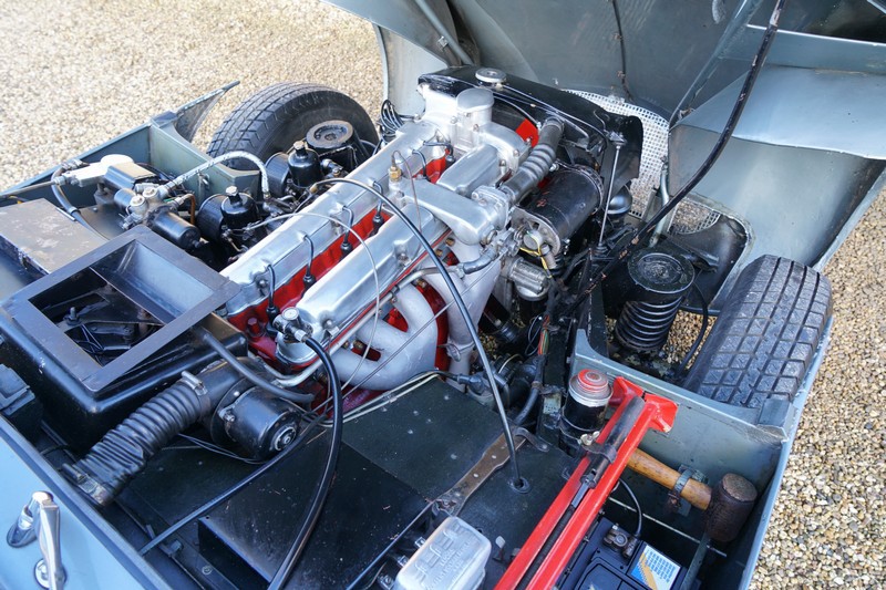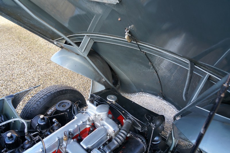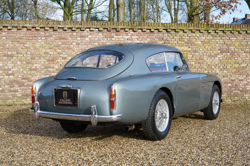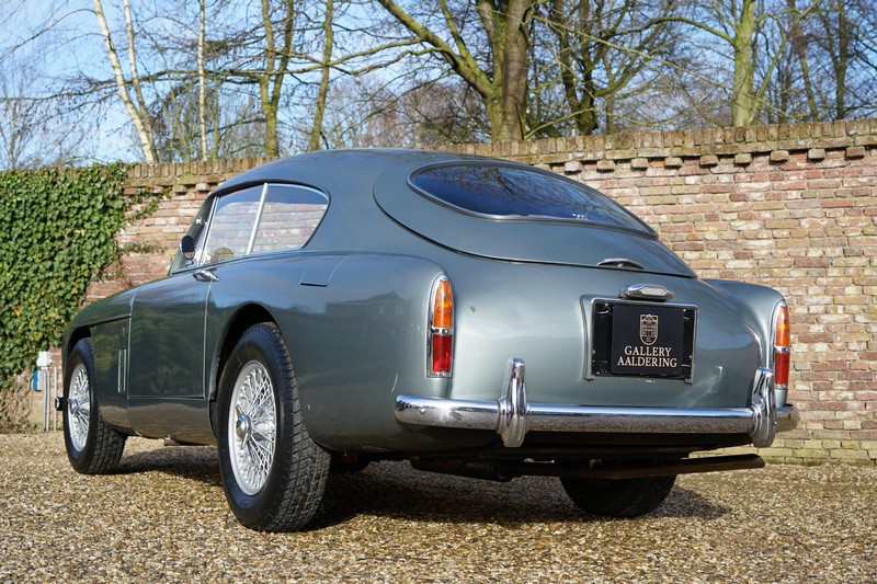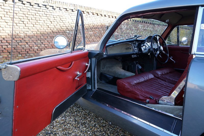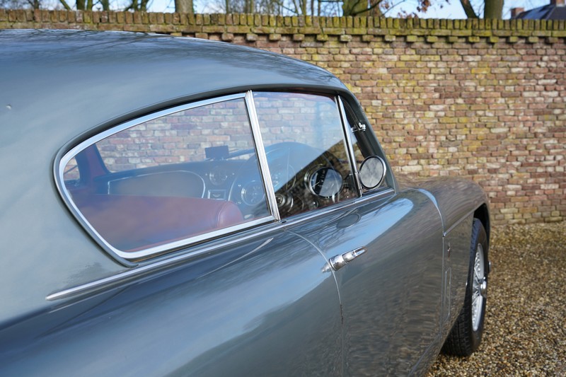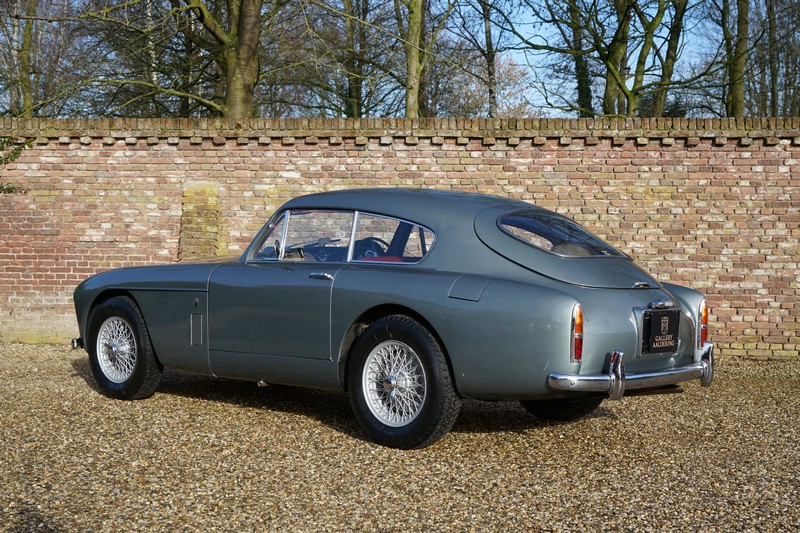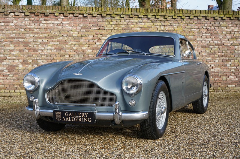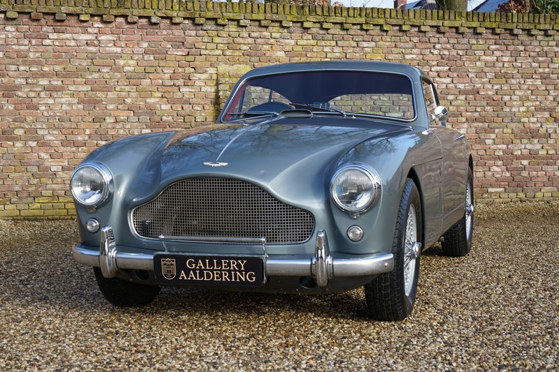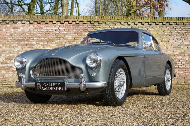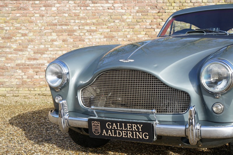 We have a remarkably authentic DB 2/4 MK3. On the 18th July 1958 it was supplied from new to the London based Portland Cement Manufacturers. This unrestored car is in an amazing authentic condition. It has always had the most excellent care lavished upon it. The fine bodywork has a lovely patina. The recently refurbished interior trim also has an excellent patina, retaining its authenticity. Mechanically speaking the car has always enjoyed the most excellent service and maintenance by a renowned specialist, ensuring the car’s continued trouble-free running order. It naturally has the original ‘Cardinal Grey’ finish with a red Connolly leather interior trim. The MK3 is instantly recognisable by its upright rear light configuration and the revamped grill that today is still the hallmark of the Aston Martin Trademark. The MK3 is the last of 2/4 series with the powerful 2.9 litre straight-six and front disc brakes. The factory supplied overdrive is a nice accessory. It also still has the original, matching numbers, twin S.U. HV6 carburettor engine. The overdrive, finish colour as well as all other numbers are as confirmed on the build sheet. The car also comes with its very first number plate. The MK3 DB 2/4’s had a limited production run and of these there are even fewer still around in this unique and untouched condition. A car is an original only once in its life, this one is absolutely unique and rarely for sale!