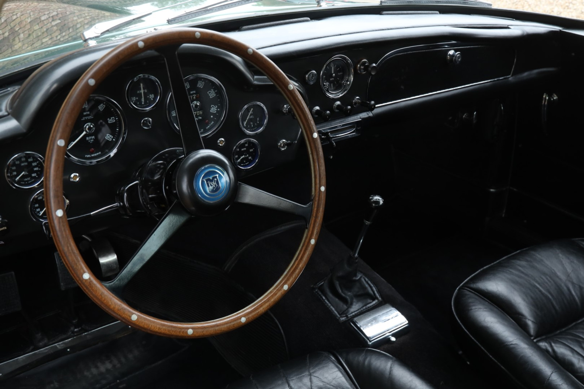 The interior tells a different story—that of authenticity and character. Whereas many restorations aim to renew, this one sought to preserve. The original cabin was kept largely intact, retaining its patina, leather, and unmistakable sense of originality. The photographs speak for themselves: this is not a restored car in the conventional sense, but a carefully preserved DB4 with soul and history.