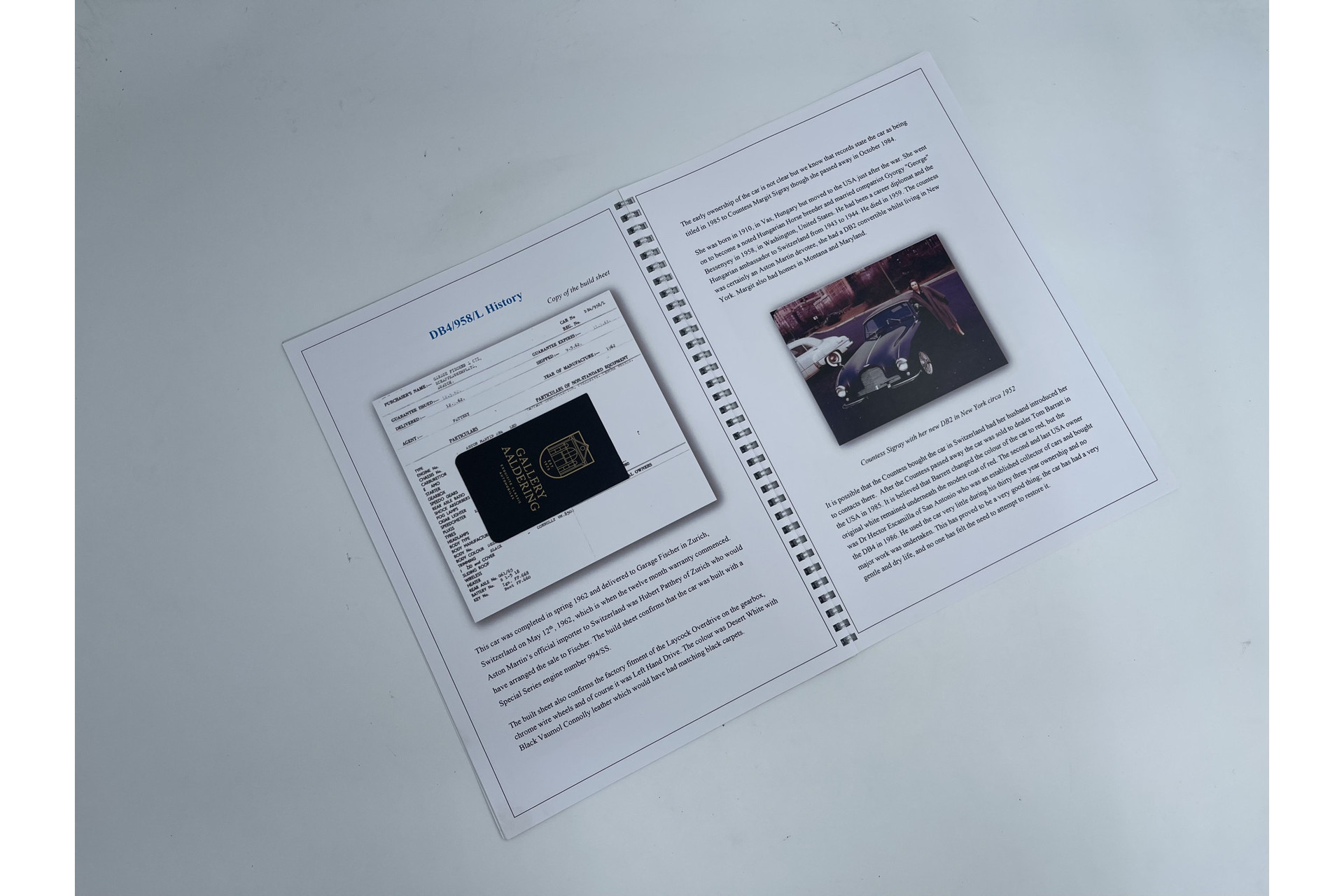 Die Restaurierung wurde mit nahezu obsessiver Hingabe an Authentizität und Perfektion durchgeführt. Die Karosserie wurde bis auf das blanke Metall zerlegt und anschließend mit größter Präzision neu aufgebaut – selbstverständlich unter Beibehaltung aller originalen Details. Die Karosserie erwies sich dabei als außergewöhnlich solide und nahezu frei von Korrosion – eine Seltenheit für einen DB4 dieses Baujahres. Der originale Motor, das Getriebe und der Antriebsstrang wurden vollständig überholt, wobei ausschließlich korrekte Komponenten und Spezifikationen nach Werksstandard verwendet wurden.