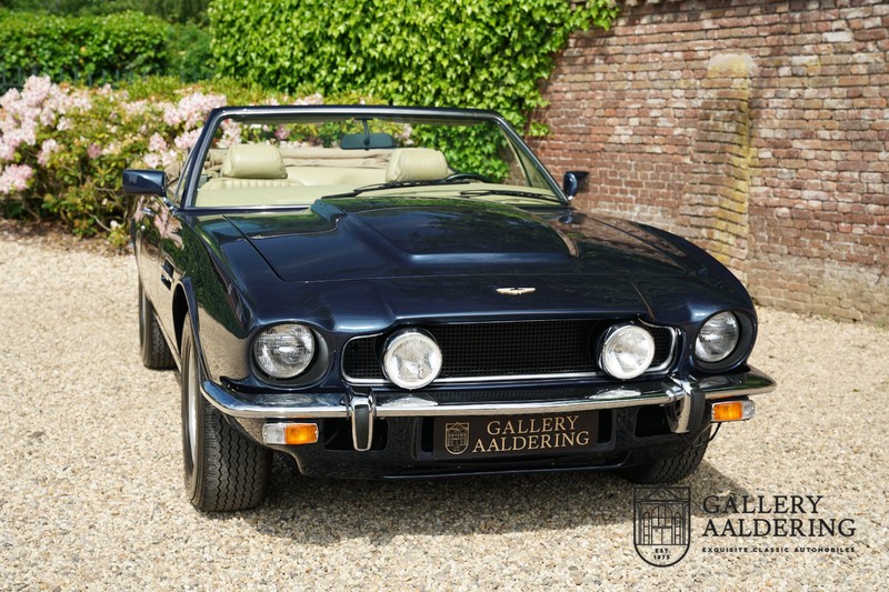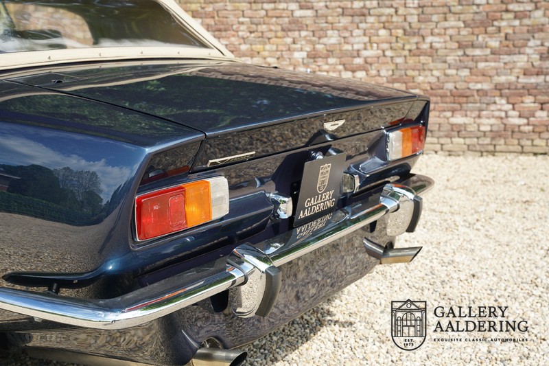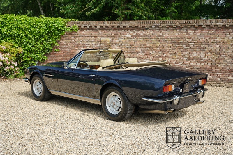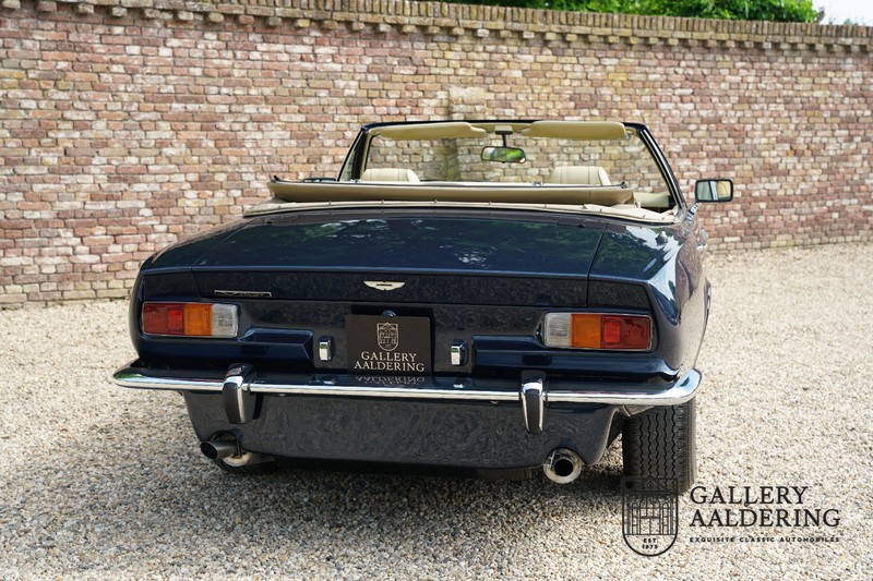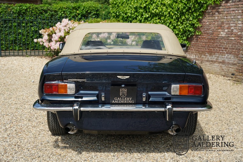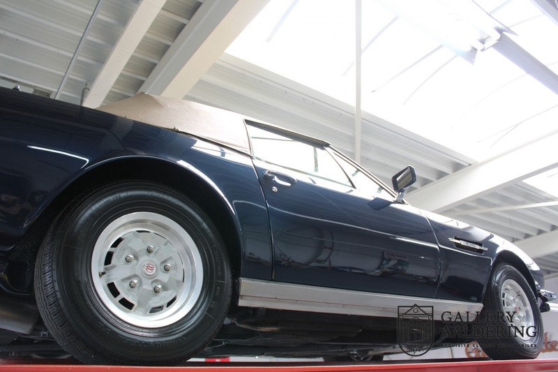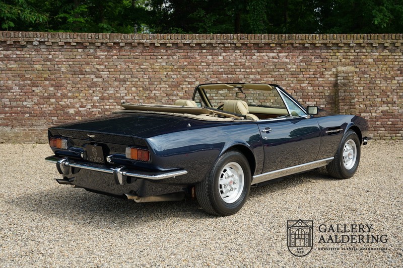 Dit exemplaar is in 2019 bij de bekende Aston Martin specialist Chris Shenton Engineering gebracht. Daar werden onder andere een aantal kleine onneffenheden opgelost zoals een moeizaam functionerende kap en wat kleine verlichtingszaken maar ook grote zaken werden aangepakt zoals het volledig opnieuw opbouwen en afstellen van de Weber carburateurs, de wielen werden opnieuw opgemaakt, alle brandstofleidingen werden vernieuwd, de tank werd verwijderd, gereinigd, opnieuw gespoten en opnieuw gemonteerd en als kers op de taart werd de Volante teruggebracht tot kaal metaal en volledig opnieuw gespoten in de prachtige blauwe kleur die ze vandaag draagt. Voordat er met de spuitwerkzaamheden werd begonnen werden de US-lights verwijderd, de carrosserie helemaal strak gemaakt en werd de motorruimte eveneens helemaal opnieuw opgemaakt. Het koelsysteem werd deels vernieuwd, de airco opnieuw op druk gezet, de accu vervangen en een heleboel bijkomende kleine werkzaamheden. Kortom na een rekening van meer dan £ 40.000 staat er een vrijwel nieuwe Aston Martin V8 Volante in een schitterende kleurstelling.