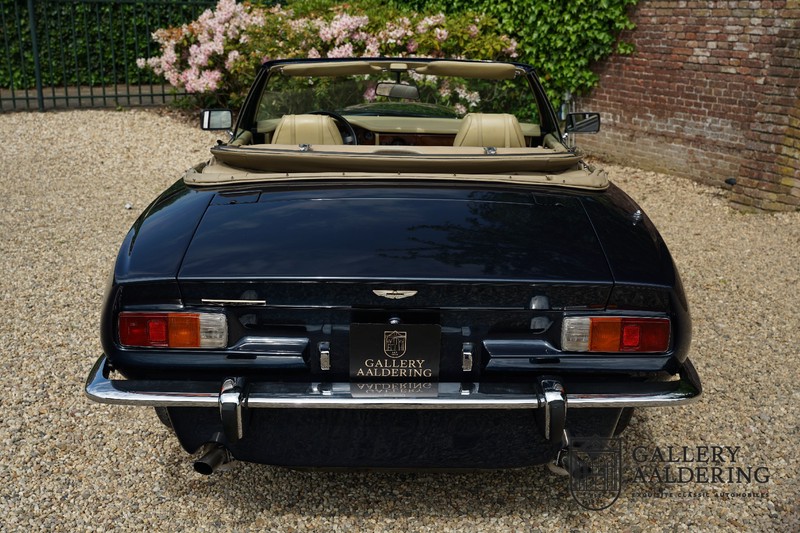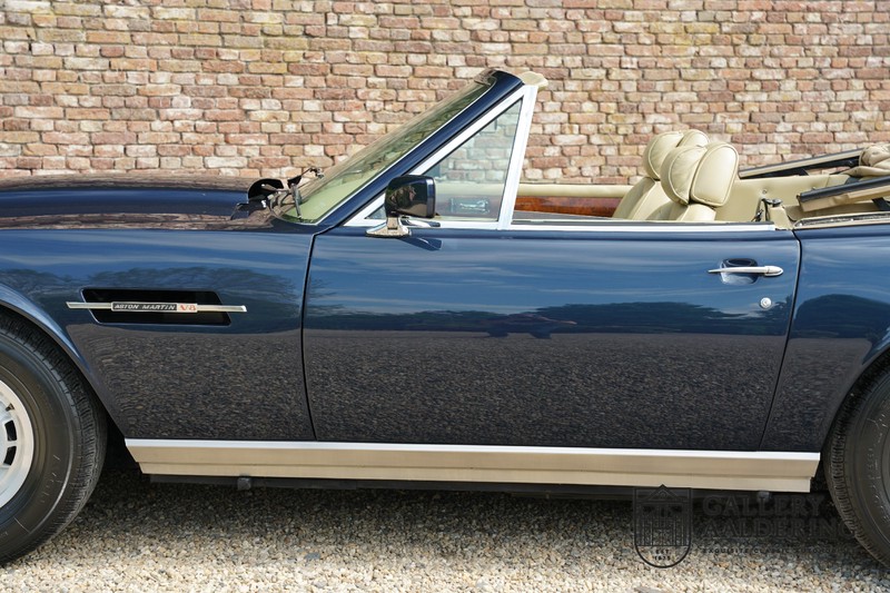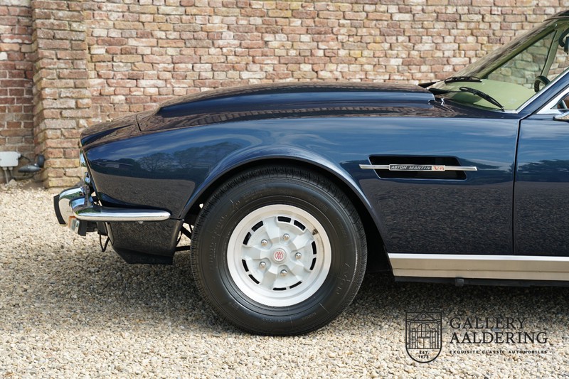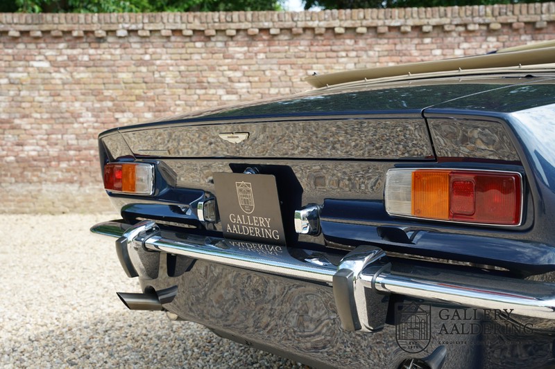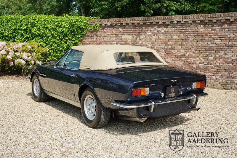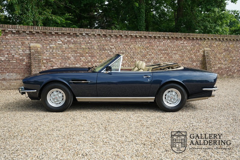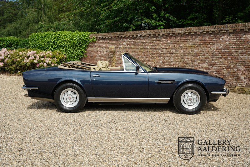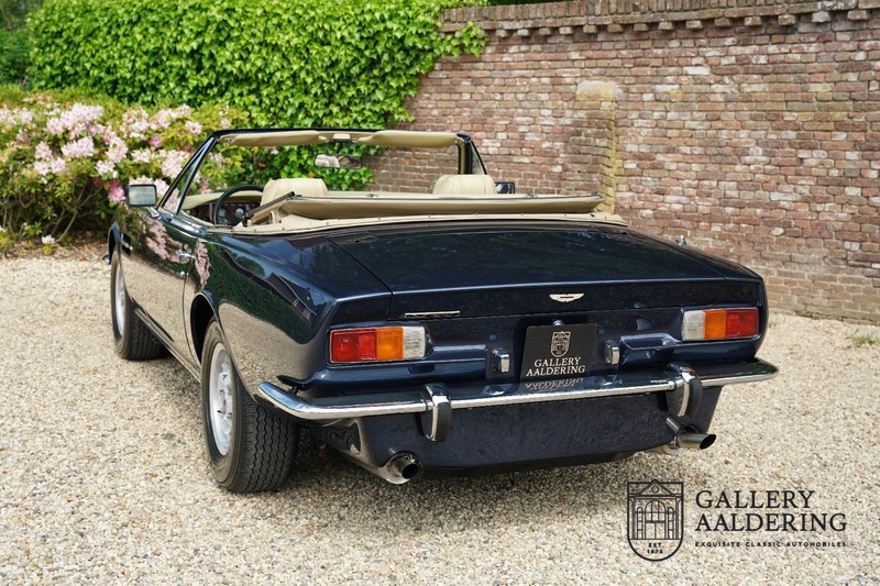 Dit exemplaar is in 2019 bij de bekende Aston Martin specialist Chris Shenton Engineering gebracht. Daar werden onder andere een aantal kleine onneffenheden opgelost zoals een moeizaam functionerende kap en wat kleine verlichtingszaken maar ook grote zaken werden aangepakt zoals het volledig opnieuw opbouwen en afstellen van de Weber carburateurs, de wielen werden opnieuw opgemaakt, alle brandstofleidingen werden vernieuwd, de tank werd verwijderd, gereinigd, opnieuw gespoten en opnieuw gemonteerd en als kers op de taart werd de Volante teruggebracht tot kaal metaal en volledig opnieuw gespoten in de prachtige blauwe kleur die ze vandaag draagt. Voordat er met de spuitwerkzaamheden werd begonnen werden de US-lights verwijderd, de carrosserie helemaal strak gemaakt en werd de motorruimte eveneens helemaal opnieuw opgemaakt. Het koelsysteem werd deels vernieuwd, de airco opnieuw op druk gezet, de accu vervangen en een heleboel bijkomende kleine werkzaamheden. Kortom na een rekening van meer dan £ 40.000 staat er een vrijwel nieuwe Aston Martin V8 Volante in een schitterende kleurstelling.