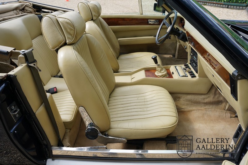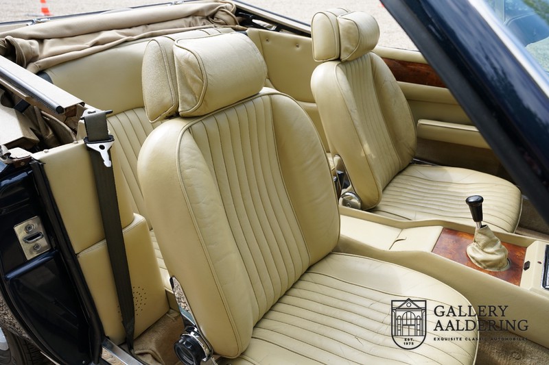 Dieses Exemplar sieht nicht nur wunderschön aus, es wurde damals auch mit einer perfekten Ausstattung und Farbkombination bestellt. Das Auto hat nämlich das beliebte Schaltgetriebe und ein sehr schönes Interieur. Es hat Aston Martin damals 4 Monate gekostet um die Volante komplett zu bauen. Obwohl der Neupreis ziemlich hoch war, hat Aston Martin wegen der langen Bauzeit nur wenig verdient mit der V8 Volante.