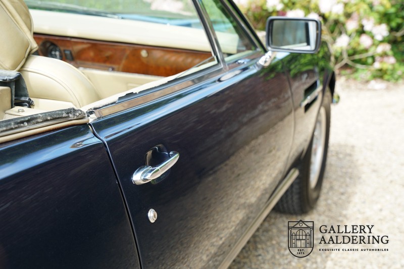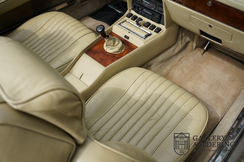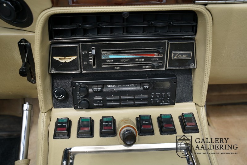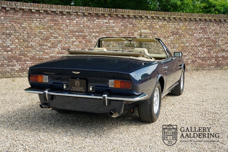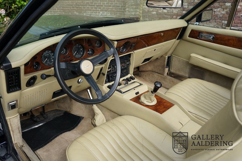 Dieser fantastische Aston Martin mit Matching Numbers wurde in 1980 neu geliefert in Beverly Hills, Kalifornien in den USA. Wahrscheinlich ist das Auto auch nicht viel weiter weg gewesen und ist nur in dieser Filmstar Enklave herum gefahren, die Laufleistung beträgt nämlich nur 32.600 Meilen. Es war der richtige Platz für dieses Auto, denn der Aston Martin ist eigentlich selber auch ein Filmstar, ein richtiges Hollywood Auto aus den 80er Jahren.