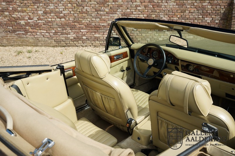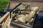 Dat het exterieur er fantastisch uitziet mag als vanzelfsprekend worden gezien. Het interieur is echter minstens zo mooi. Toen de auto nieuwe werd besteld koos de eerste eigenaar voor een beige bovenkant van het dashboard, beige tapijten, beige leder en een beige kap. De elektrisch te bedienen cabrioletkap is origineel en sluit overal mooi aan. De tapijten en lederen bekleding zijn eveneens origineel en zijn een lust voor het oog. Door de lage mijlenstand en de fantastische zorgen heeft het leder een prachtig patina ontwikkeld maar ziet het er nog altijd prachtig uit. Vanzelfsprekend functioneren ook alle bedieningselementen en instrumenten ook precies zoals het hoort.