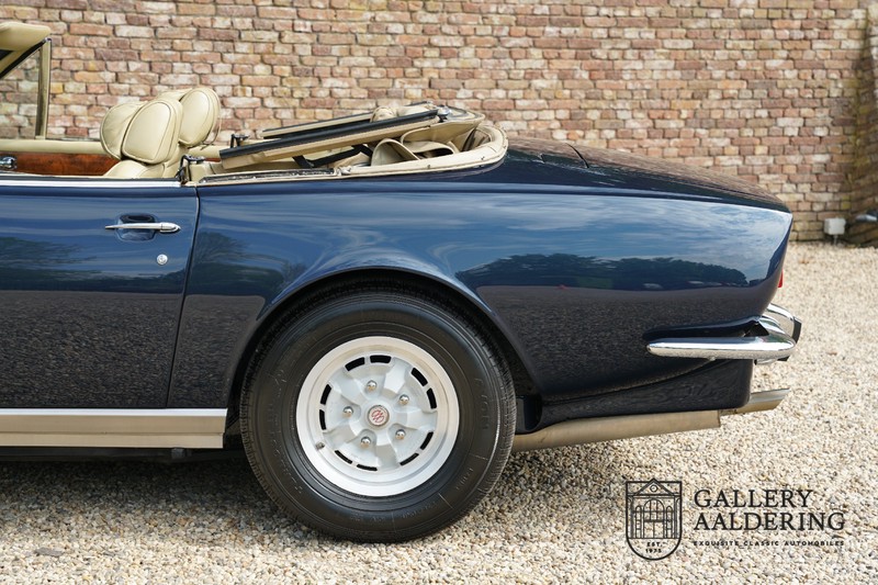 Dieses Exemplar wurde in 2019 bei dem renommierten Aston Martin Spezialisten Chris Stenton Engineering gebracht um das Auto wieder in einem Topzustand zu versetzen. Das Verdeck funktioniert wieder einwandfrei, die Beleuchtung ist wieder voll in Ordnung, die Weber Vergaseranlage wurde neu aufgebaut und eingestellt, die Räder wurden komplett überholt, alle Kraftstoffleitungen wurden erneuert, der Benzintank wurde herausgenommen, gereinigt und neu lackiert und zum Schluss wurde die komplette Lackschicht entfernt und wurde das Auto neu lackiert in der heutigen wunderschönen blauen Farbe. Zuvor wurden zuerst die amerikanische Seitenlichter entfernt und auch der Motorraum wurde komplett überholt. Das Kühlsystem wurde teils erneuert, die Klimaanlage wurde neu abgefühlt, eine neue Batterie wurde montiert und es wurden noch viele kleine Arbeiten durchgeführt. Die Gesamtrechnung lag in Höhe von 40.000,- £, aber das Endergebnis ist eine fast neue Aston Martin V6 Volante mit einer wunderschönen Farbkombination.