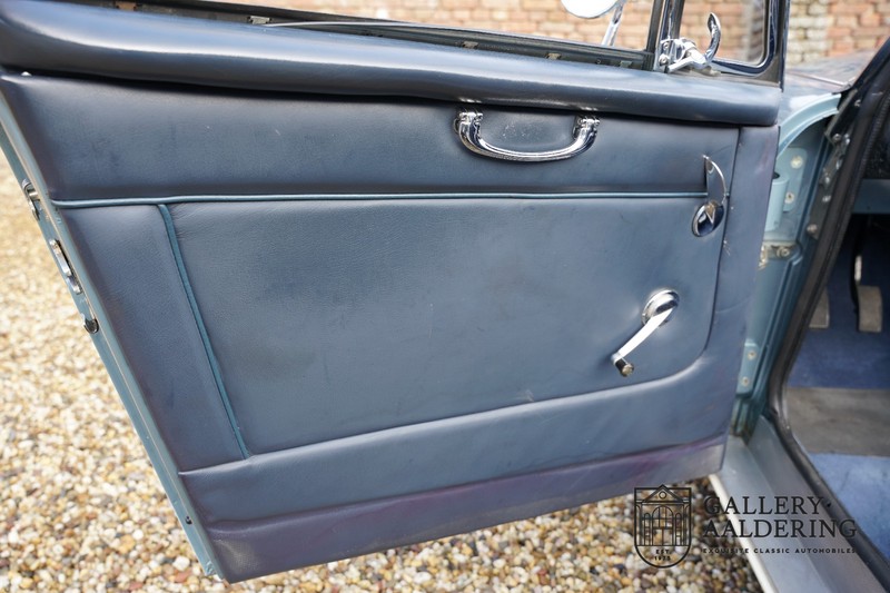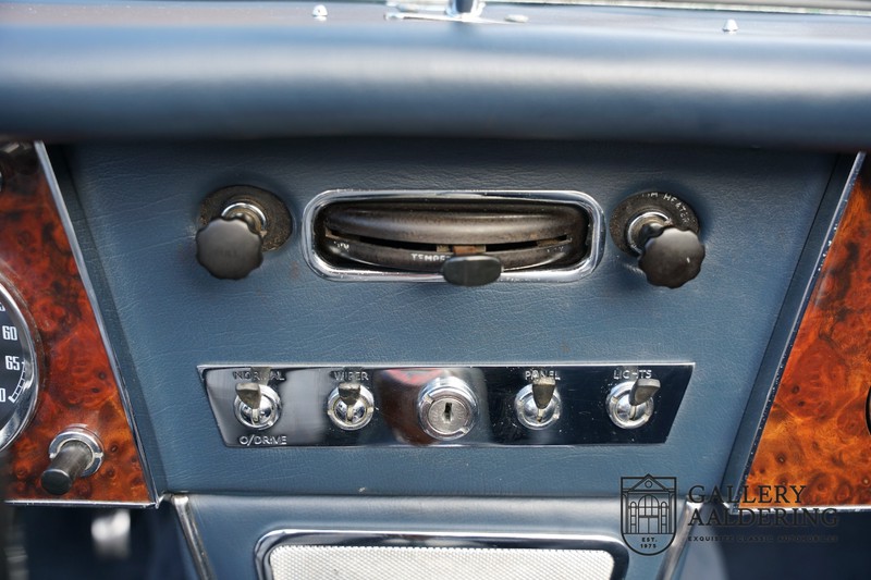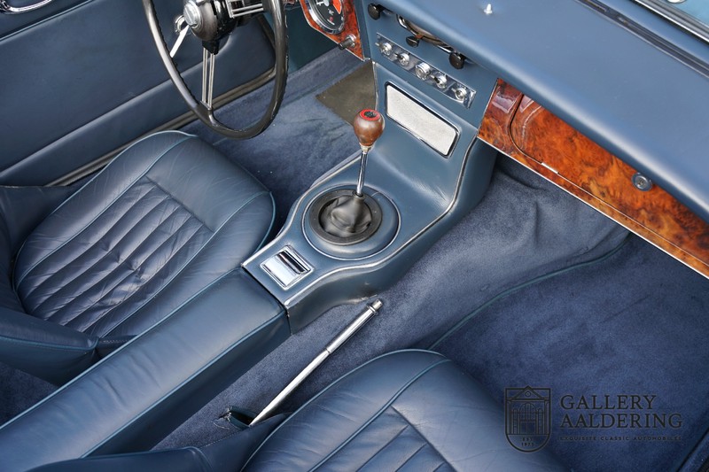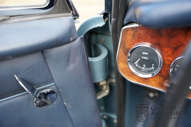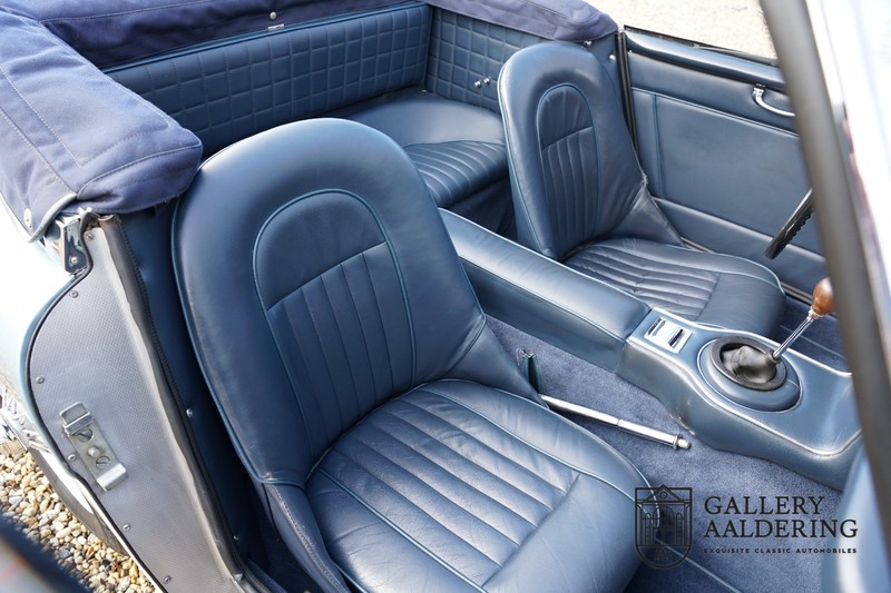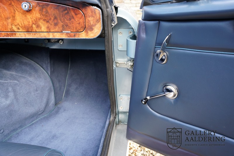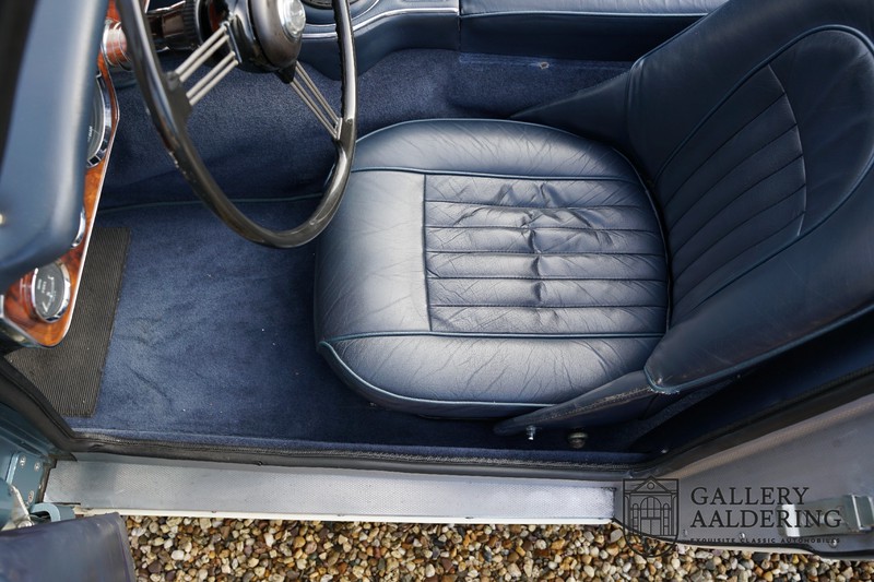 The interior trim was replaced using fine blue leather and carpets. Here again, the result shows the quality of the work is second to none. The seat leather is wonderfully supple and the door cards too were fully refurbished. The nicely fitted carpets are in good condition. The instrument display and wooden dashboard are all in great shape. The interior trim has the kind of wear that suits the car.