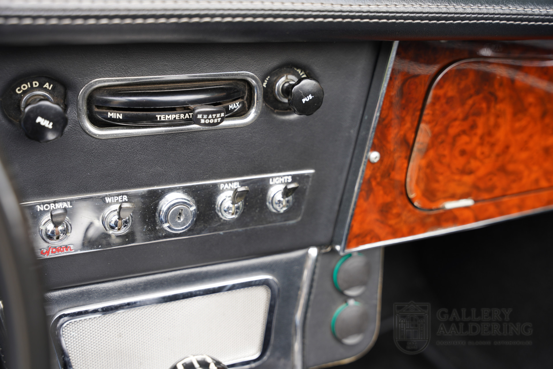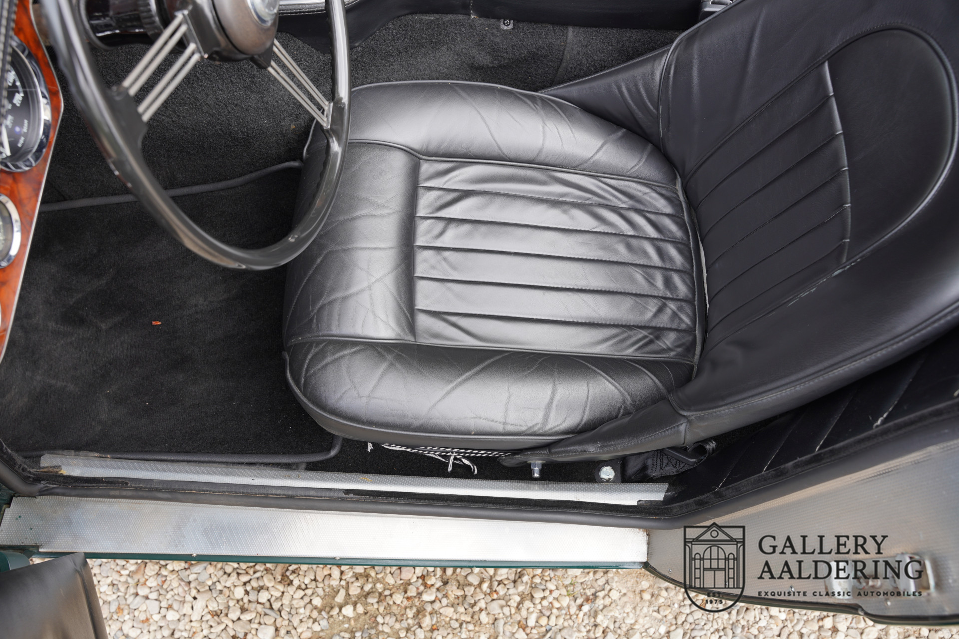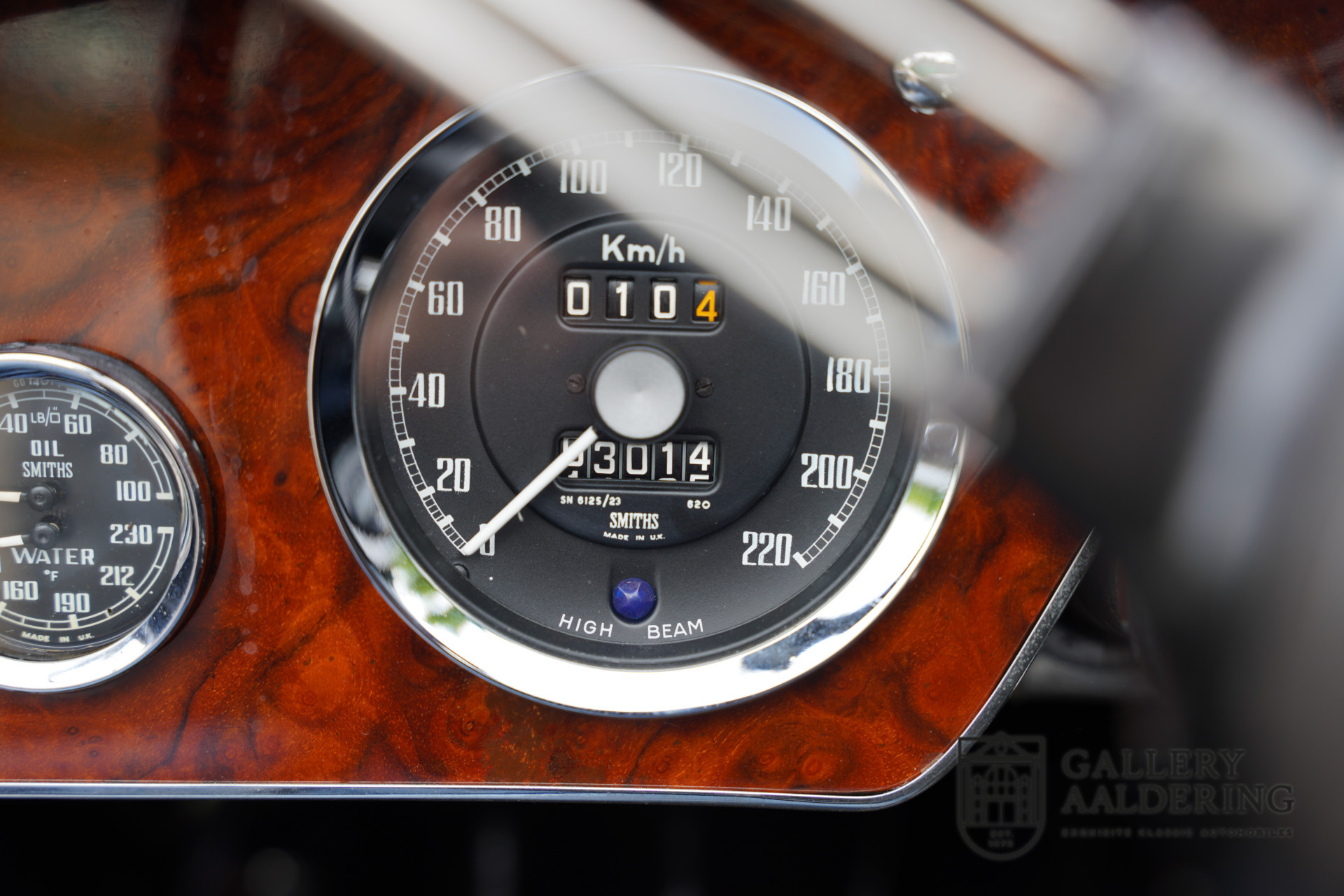 The interior was completely reupholstered at the time with a great sense of originality and with the use of beautiful materials. Beautiful and supple black leather that was renewed during the restoration, carpets that have suffered the same fate and a beautiful, largely wooden dashboard finishes it off. Beautiful rocker switches, perfectly functioning controls and beautiful Smith instruments give a very clear impression of the condition of the inside of this Mk3. Did we already mention that the black soft top is in optimal condition? Hereby! If the car is parked, there is also a black tonneau cover with the car to cover it neatly.