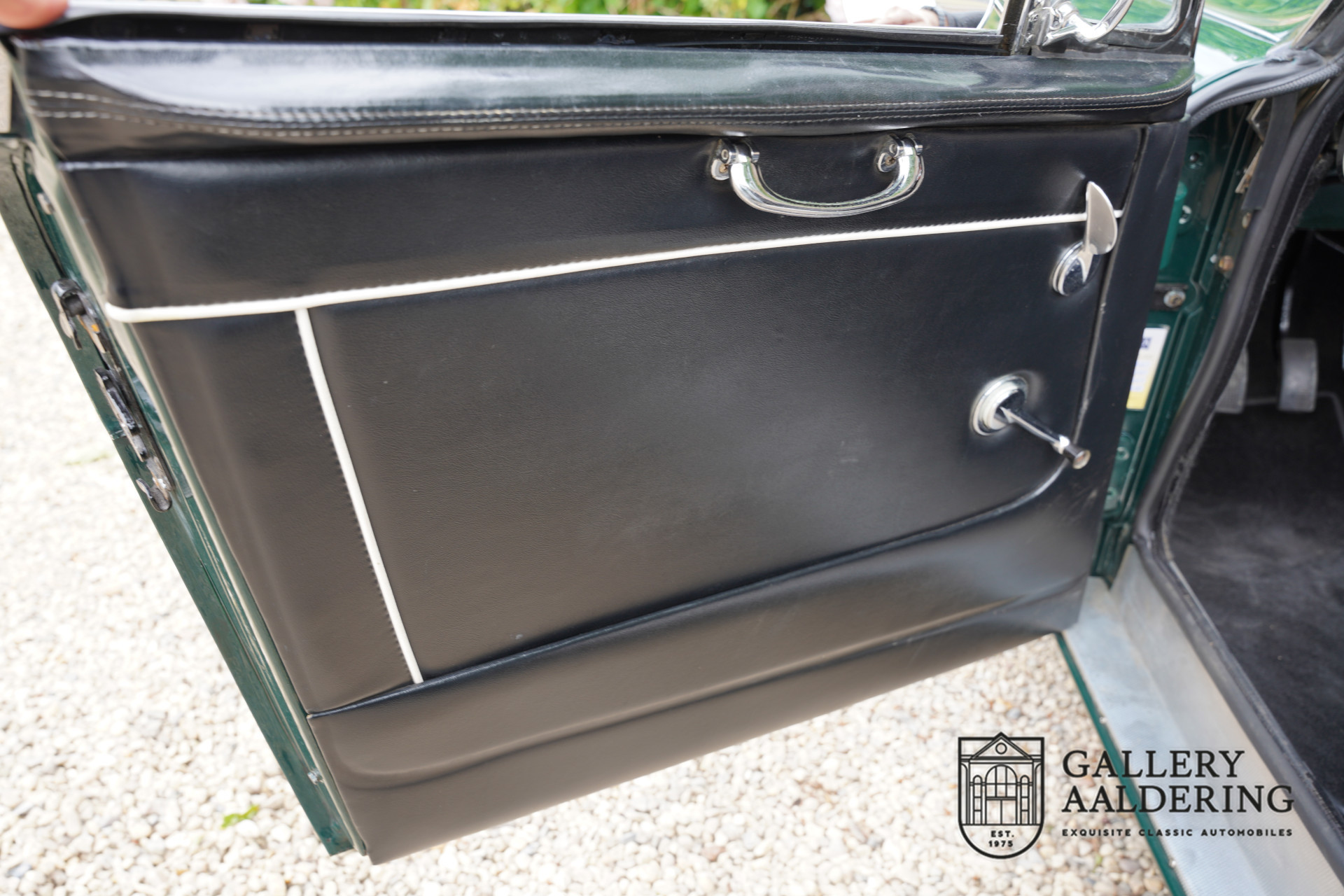 Die Karosserie ist frei von Beschädigungen und das Auto hat einen schönen Glanz. Die Farbe ist schön satt und verleiht dem Auto den typisch englischen Look. Die Chromarbeiten sind wunderschön, die Stoßstangen, Beleuchtungsteile, Details und auch die Speichenräder sind in optimalem Zustand. Das Auto soll „komfortabel auf den Rädern“ sein und die Scheinwerfer an der vorderen Stoßstange sorgen für ein besonders sportliches Erscheinungsbild. Ordentlich gewartet und sorgfältig gepflegt, alles an diesem Auto zeigt, dass es bis ins letzte Detail geschätzt wurde.