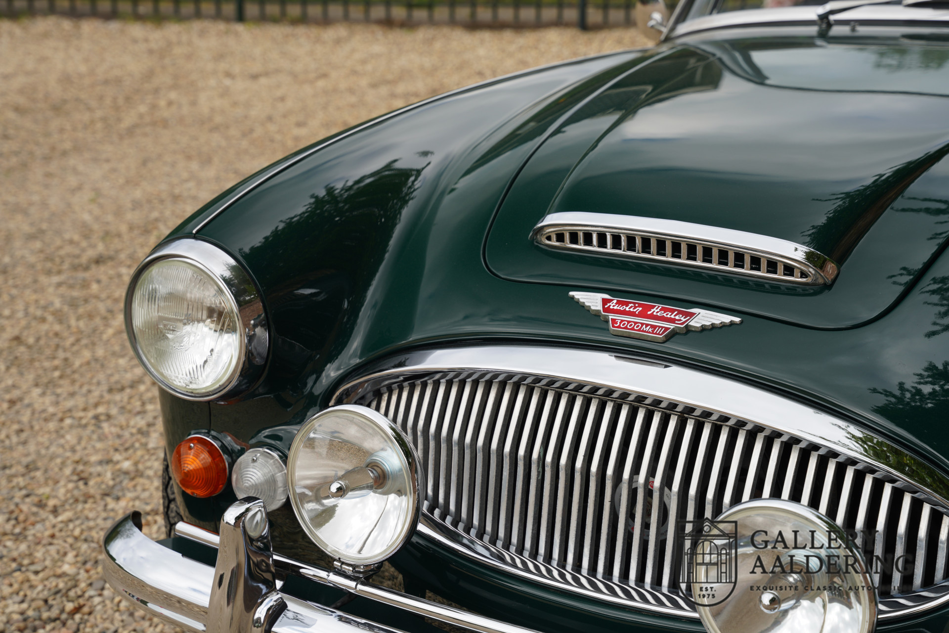 Dieser Austin-Healey 3000 Mk3 BJ8 ist einer, wie er uns sehr gut gefällt: eine schöne Farbgebung, der richtige Motor und schöne Details wie das schwarze Leder und die Speichenräder. Das Auto wird mit einer originalen Bedienungsanleitung, Restaurierungsfotos und der erforderlichen Dokumentation geliefert.