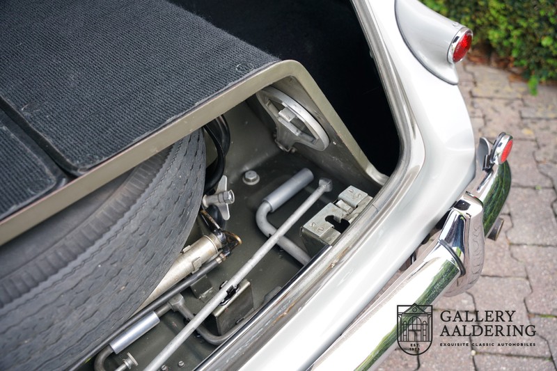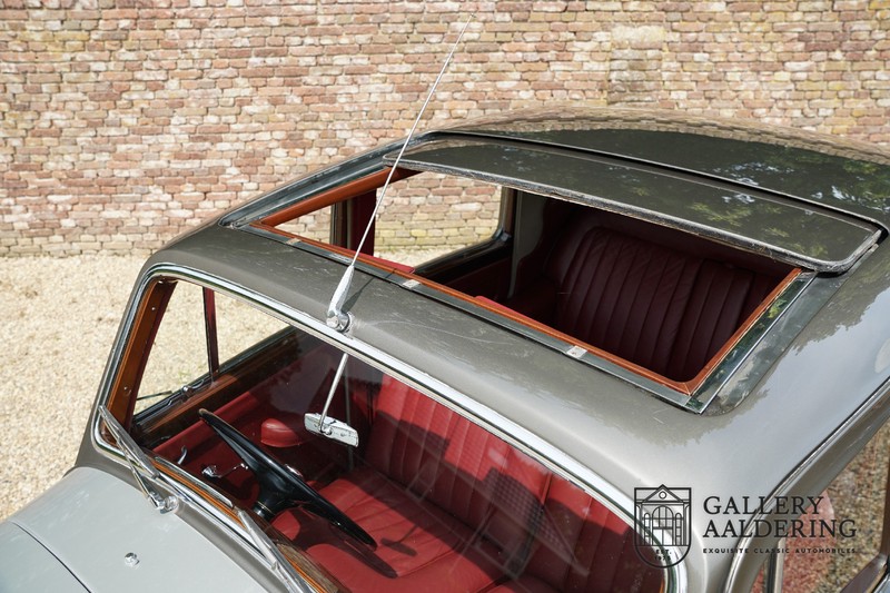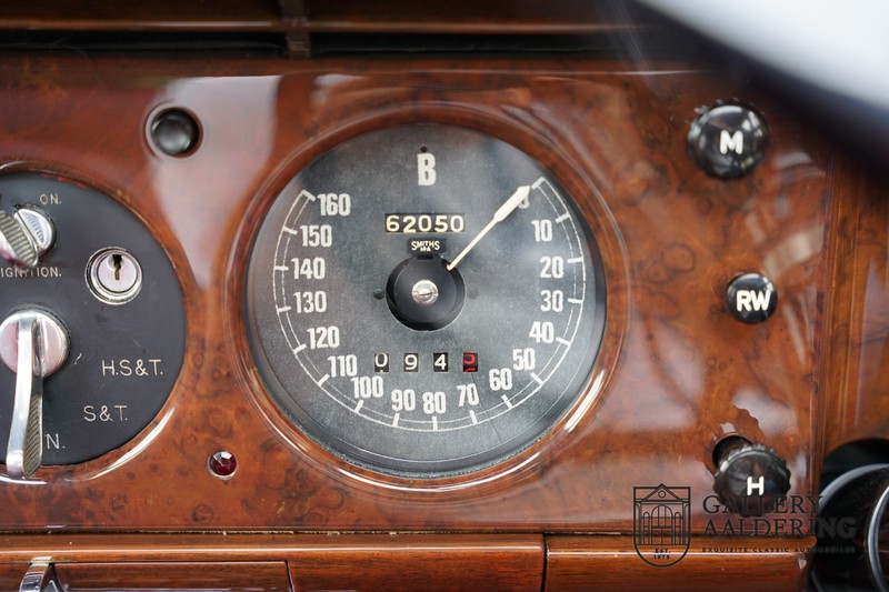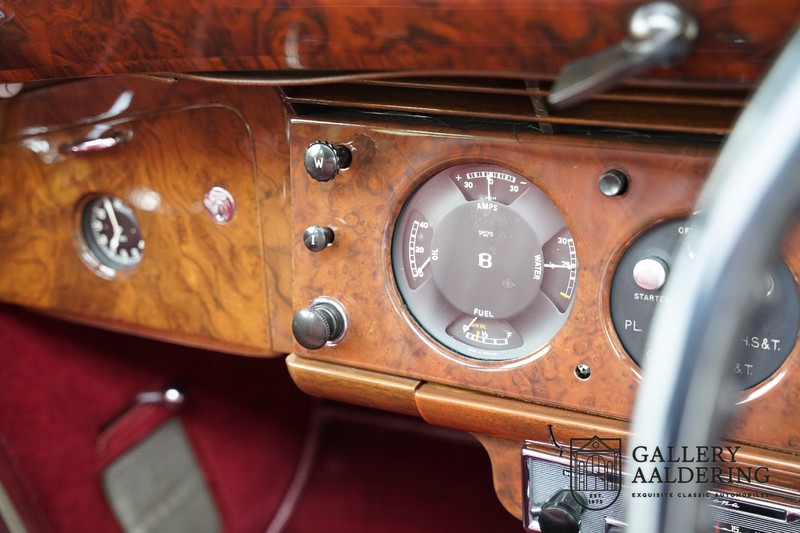 Das Interieur ist komplett original, der Teppich, das Leder, die Holzeinlagen im Armaturenbrett und der Dachhimmel sind alle original und in einem sehr Zustand. Selbstverständlich funktionieren die Instrumente und Bedienelemente einwandfrei. Es ist fantastisch um feststellen zu können, dass dieses Auto im Alter von 70 Jahren, sich noch immer in einem wunderschönen Zustand befindet. Dies zeigt uns die Qualität der verwendeten Materialien und wie das Auto gepflegt worden ist.
