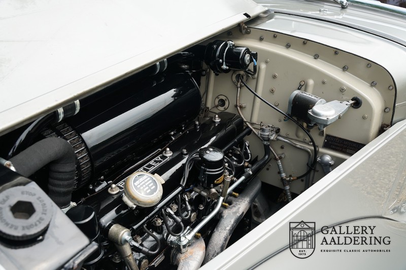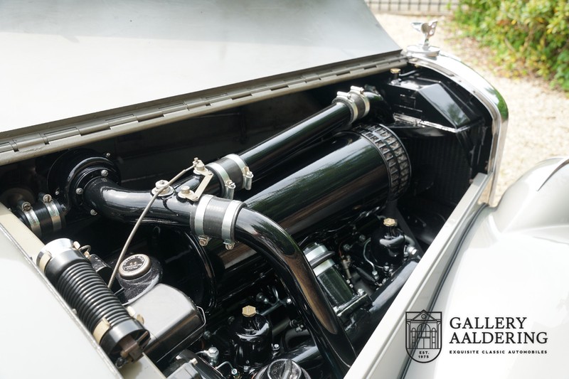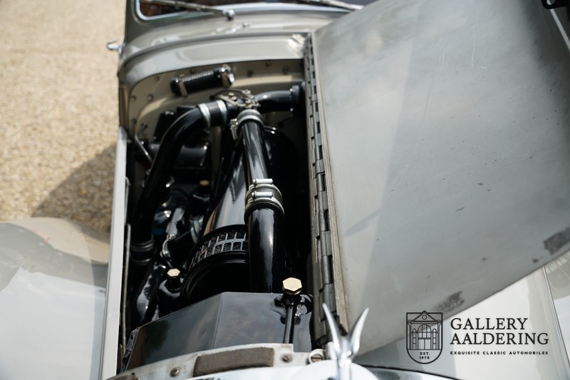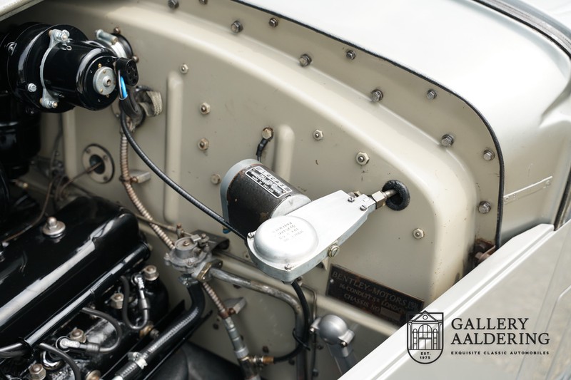 Die Technik befindet sich ebenfalls in einem Topzustand, der originale Motor hat Matching Numbers und wurde in 2014 revidiert, die Rechnungen davon sind vorhanden. Der 4.6 Liter Sechszylinder Linienmotor mit zwei SU-Vergasern leistet 130 PS, der Motor hat einen Gusseisenblock und der Zylinderkopf ist aus Aluminium. Sie können sehr entspannen fahren mit dem Bentley, der Motor läuft sehr ruhig und das Getriebe lässt sich präzise bedienen. Das Fahrgestell bietet viel Fahrkomfort und die hohe Reifen sind da natürlich auch behilflich.