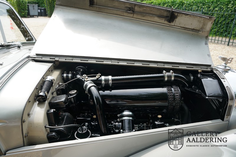 Its completely original interior has kept the genuine carpets, leather, wooden dashboard inlay and roof lining. All controls and gauges work to perfection. It is a wonderful sight to see the lovely condition of a 70 year old car’s interior. It is also indicative of manner in which and the materials used in maintaining this car over the previous decennia.