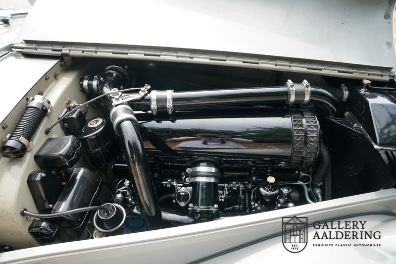 Het interieur is volledig origineel, de tapijten, het leder, de houtinleg op het dashboard en hemelbekleding zijn volledig origineel. Uiteraard werken alle bedieningselementen en instrumenten zoals u mag verwachten. Het is prachtig om te zien dat het interieur van een auto na bijna 70 jaar nog steeds in zo’n prachtige staat kan verkeren, het is toonaangevend voor de gebruikte materialen en manier waarop de auto de afgelopen decennia is verzorgd.