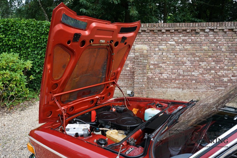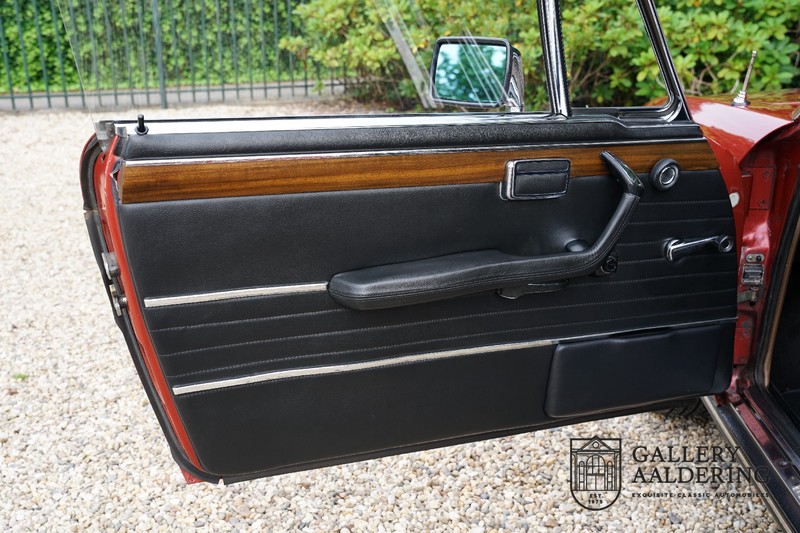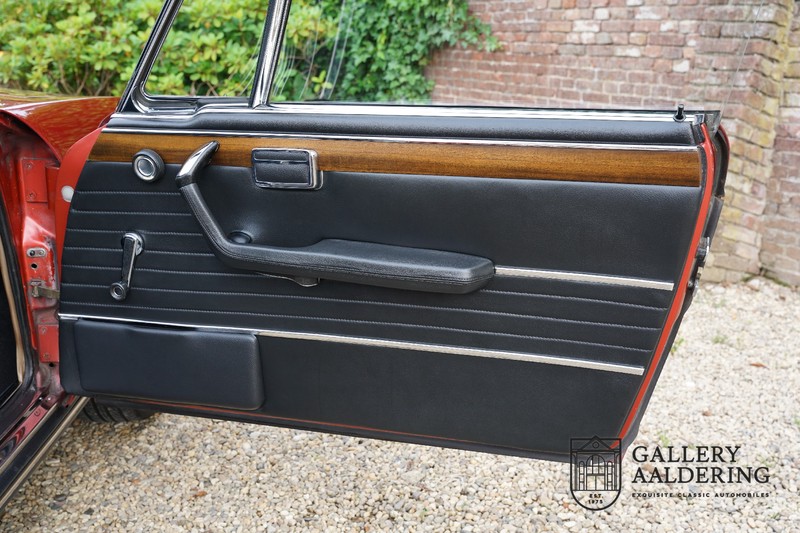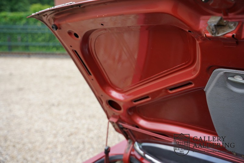 The bodywork therefore looks good with only a few light blemishes. The alignment is correct and the panelwork nice and thin. The brightwork is also very neat. It also has a sunroof that functions with ease and is watertight. The car has a fantastic “Granatrot” metallic finish. The 2014 respray has held up really well.